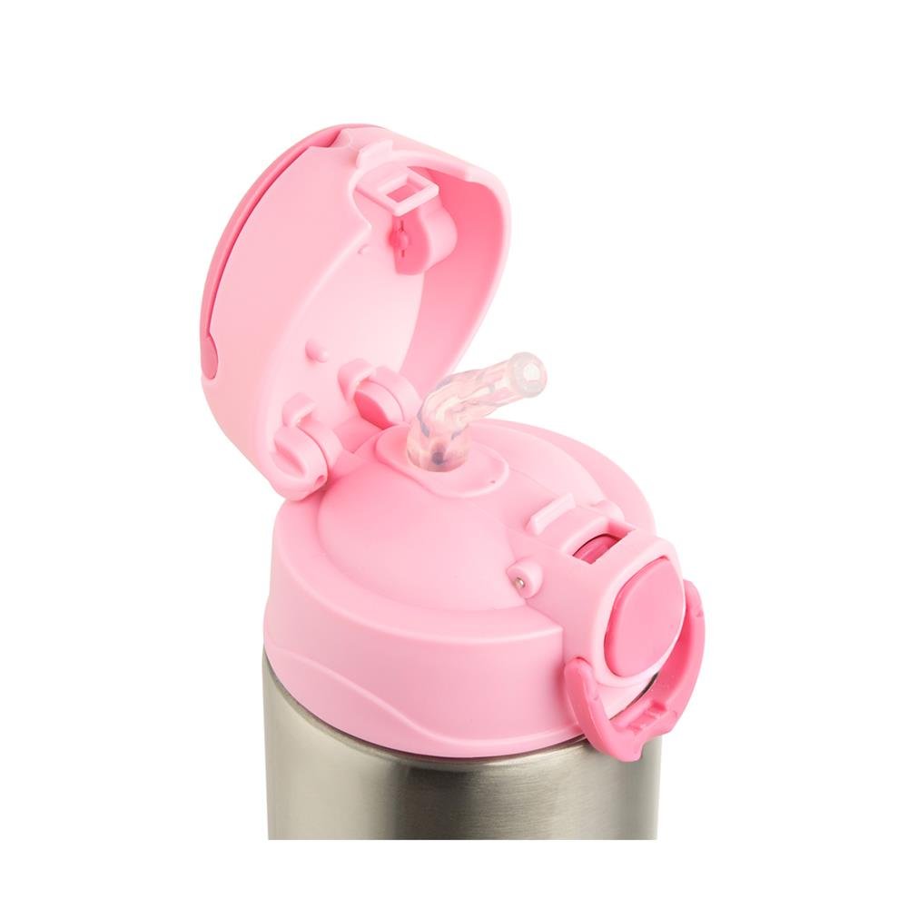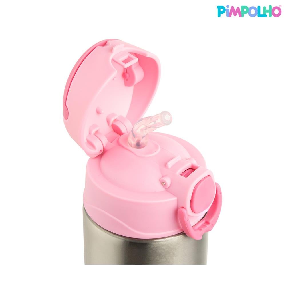 Polibag com 1 unidade na cor Rosa. A garrafa de aço inox escovado da Pimpolho é uma ótima escolha para conservar as bebidas dos pequenos por mais tempo. Seu copo é resistente por ser revestido com parede dupla. Sua vedação por tampa também possui botão, trava e canudo de silicone acoplado. Possui base de silicone para evitar quedas e sua capacidade é para 400ML, ideal para passeios e viagens pois conserva a temperatura por até 5H. Este produto é atóxico e livre de BPA.