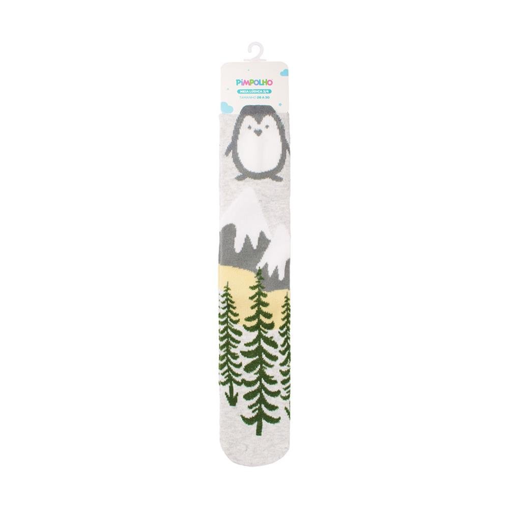 A Meia 3/4 Divertida Pimpolho tem estampas coloridas com personagens lúdicos e detalhes em 3D divertidos. Macia e confortável feita em sua maioria em algodão possui cano longo ideal para usar com sandálias, botas e galochas em looks super estilosos. Polybag com 8 pares, sendo: 2 Cinza/Pinguim, 2 Azul/Polvo, 2 Azul/Paisagem e 2 Azul/Leão.