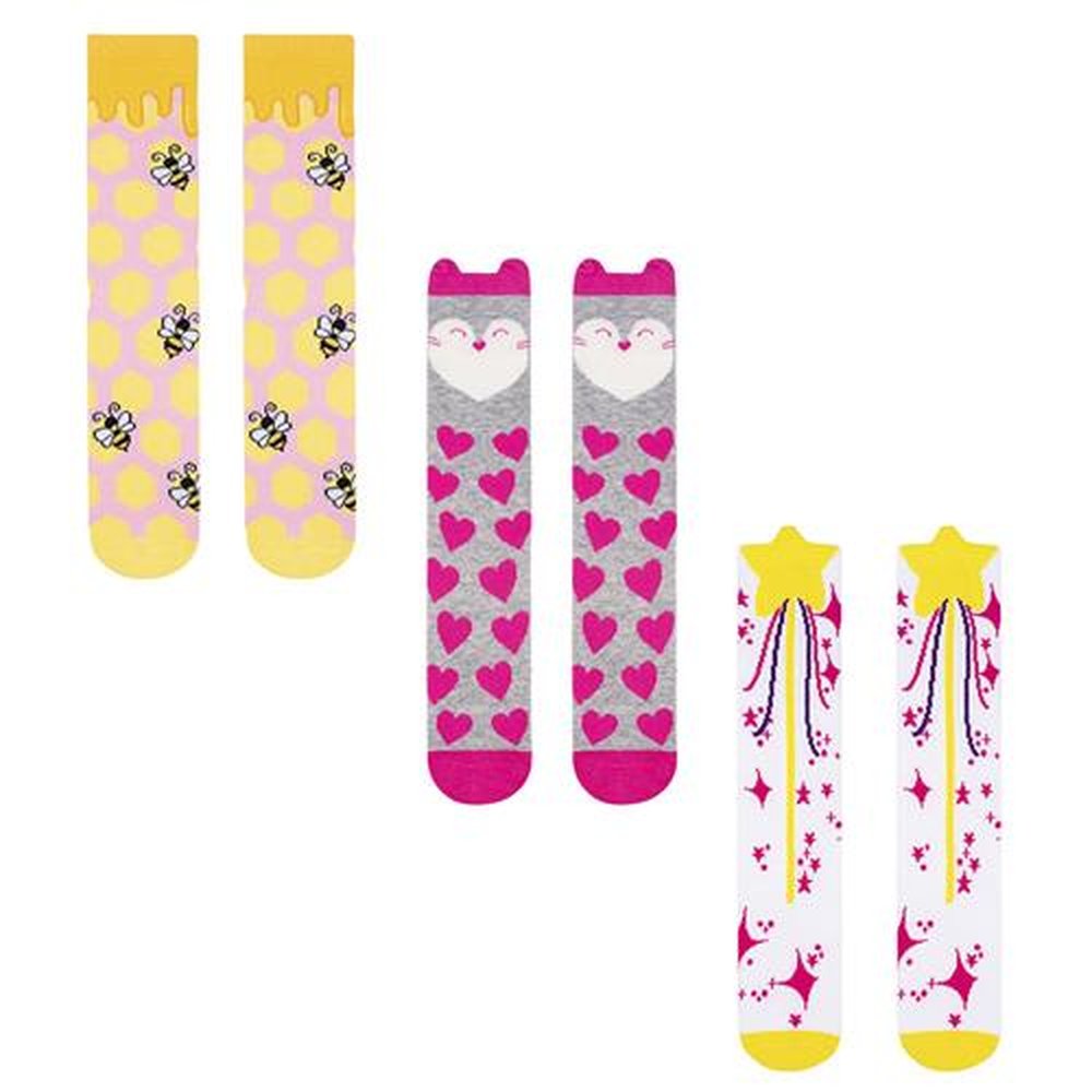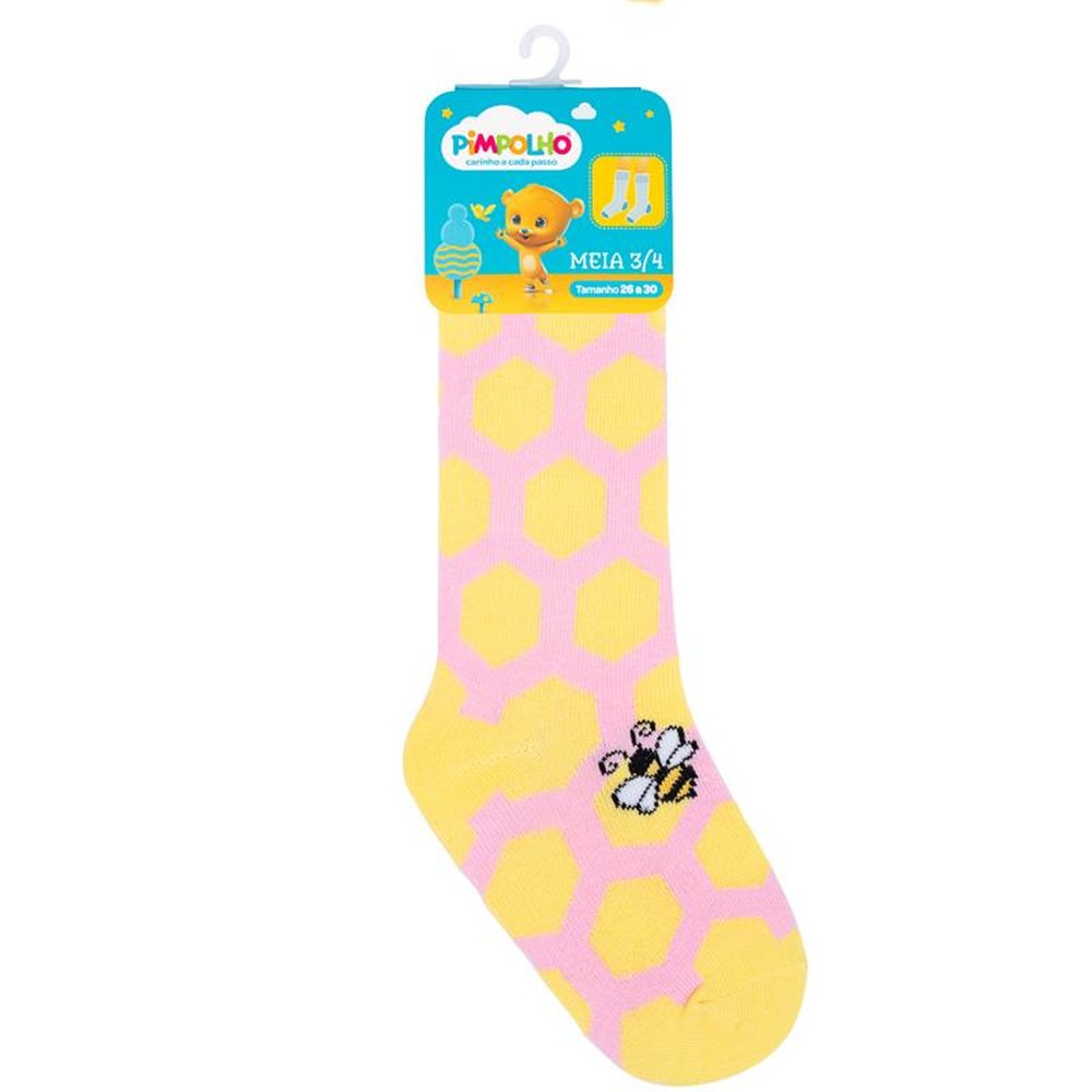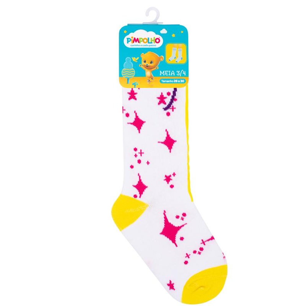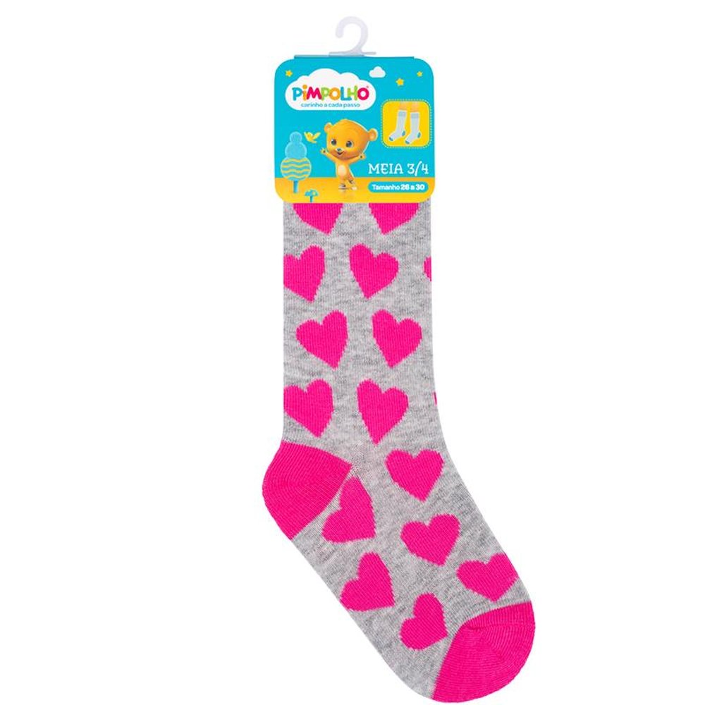 Polybag com 6 pares, sendo 2 rosa abelinha, 2 cinza coração e 2 branca estrelas. A Meia 3/4 Divertida Pimpolho tem estampas coloridas com temas lúdicos e detalhes diferenciados. Macia e confortável possui cano longo ideal para usar com botas em dias de chuva.