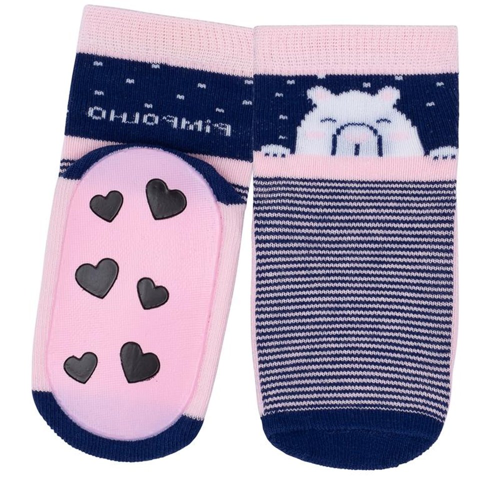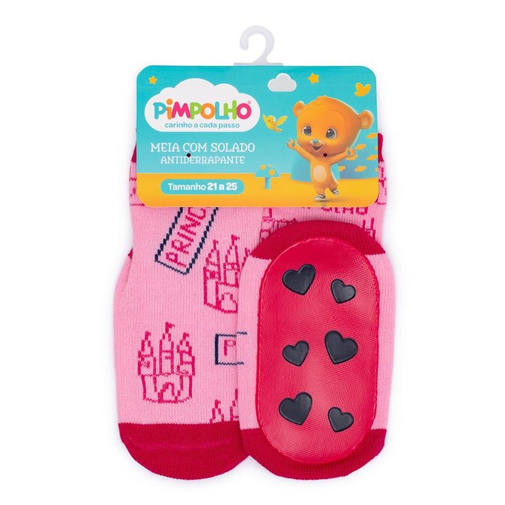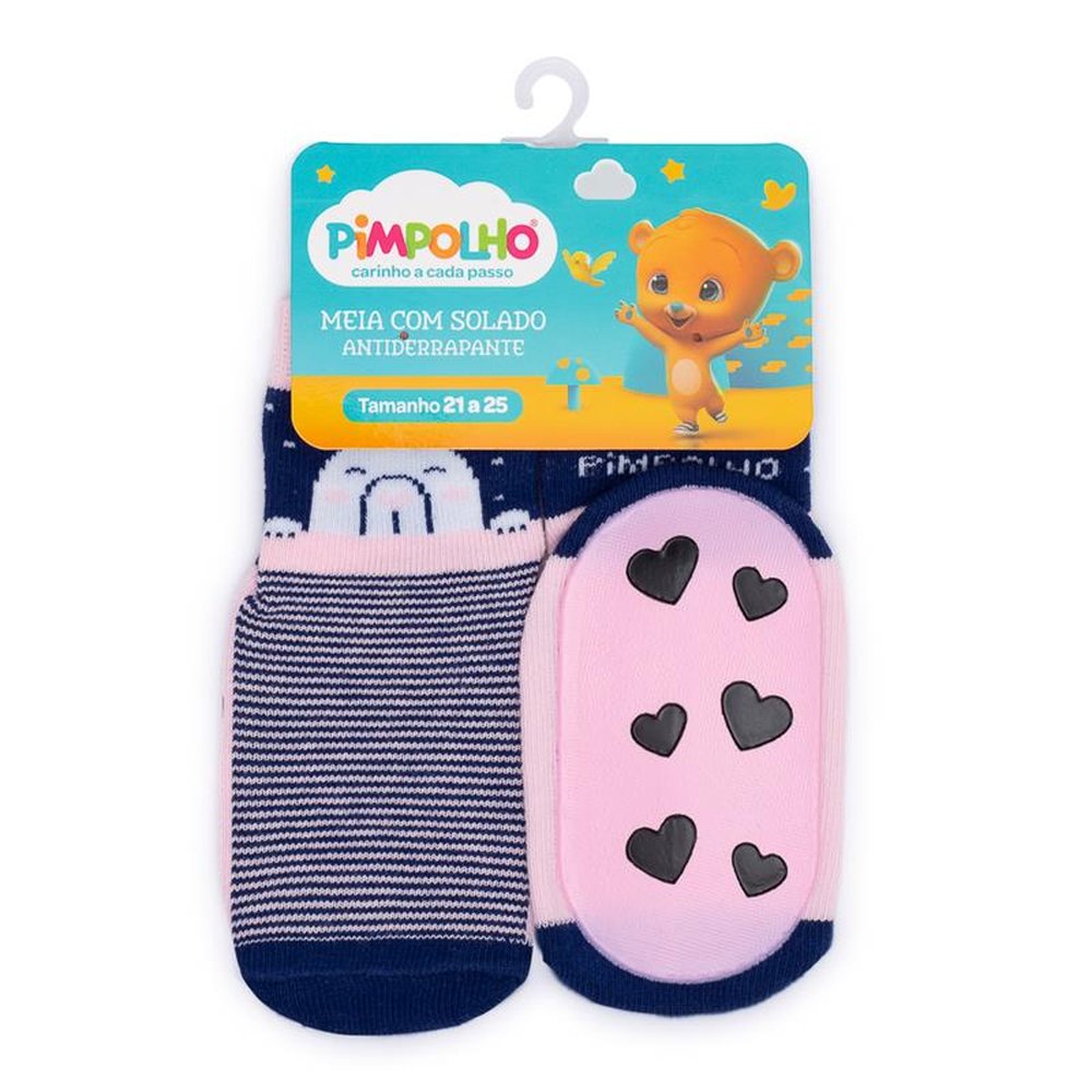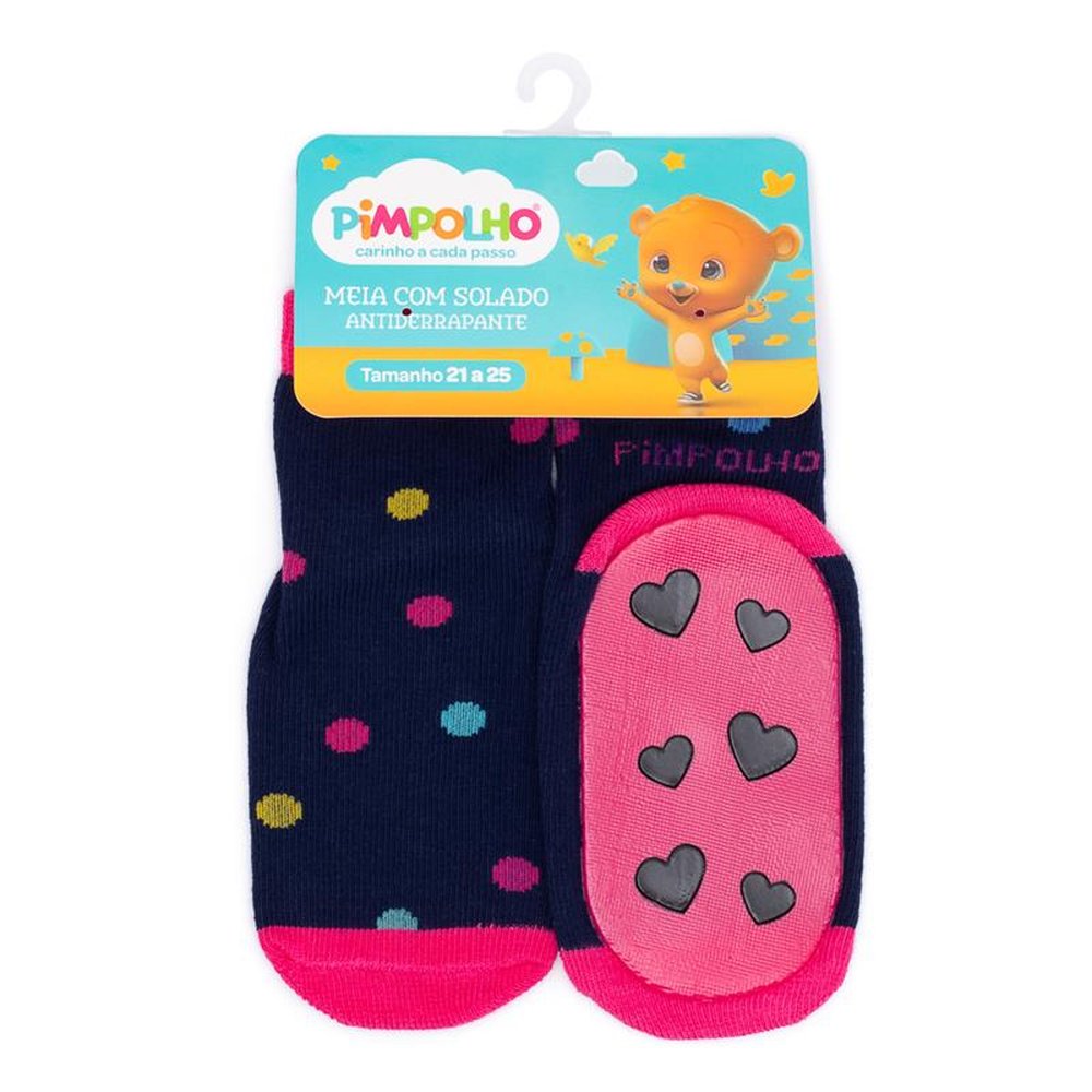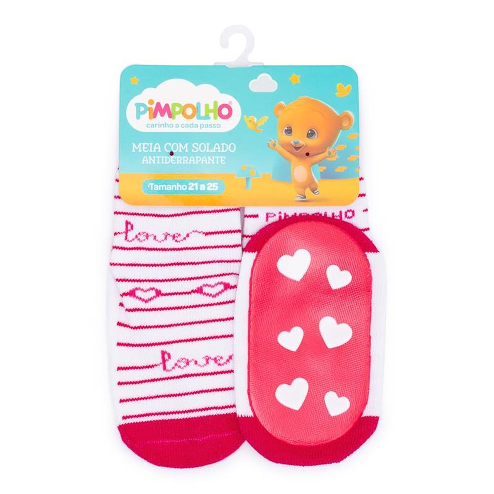 Polibag com 16 pares, sendo 4 Marinho Urso, 4 Marinho Bolinhas, Rosa Princesa e 4 Branco Love. Ideal para as crianças que estão aprendendo a andar, pois possui antiderrapante em toda a base do solado, criando uma maior aderência.