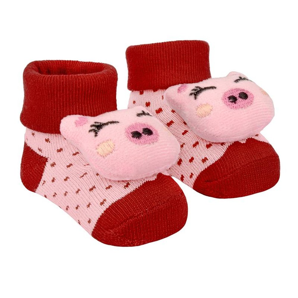 Kit com 8 pares, sendo: 2 Rosa/Coruja, 2 Rosa/Estrela, 2 Rosa/Flor e 2 Vermelha/Porquinha. A Meia Bichinho é macia e oferece o conforto ideal para o recém-nascido, vai proteger e manter os pezinhos do bebê sempre quentinhos.