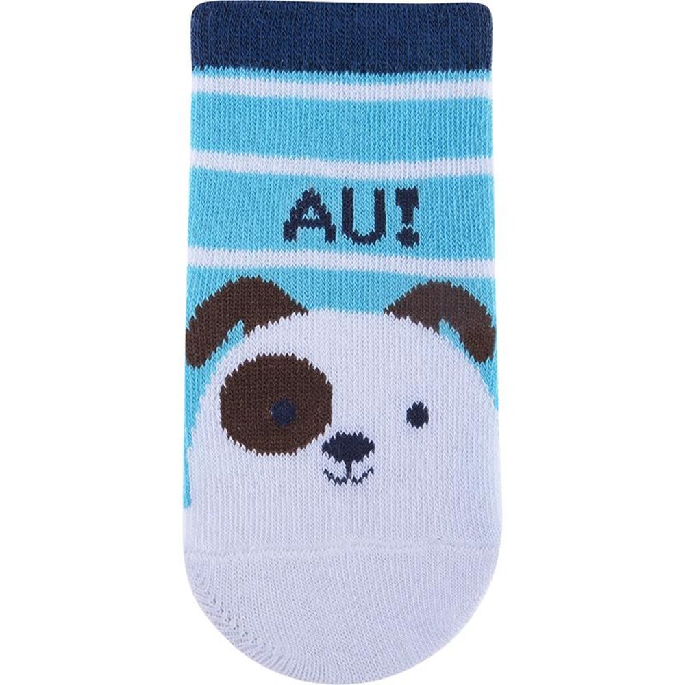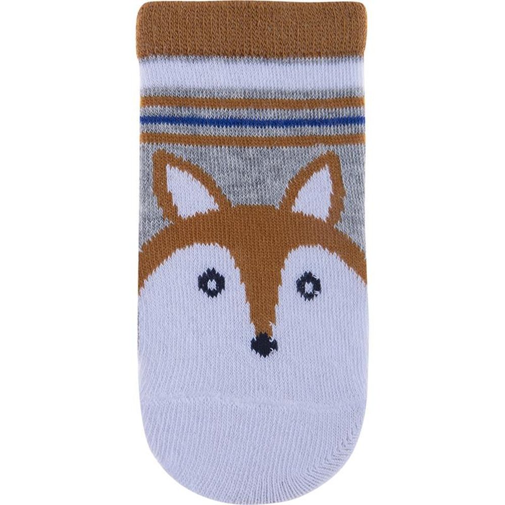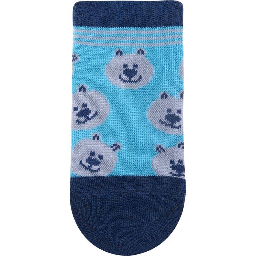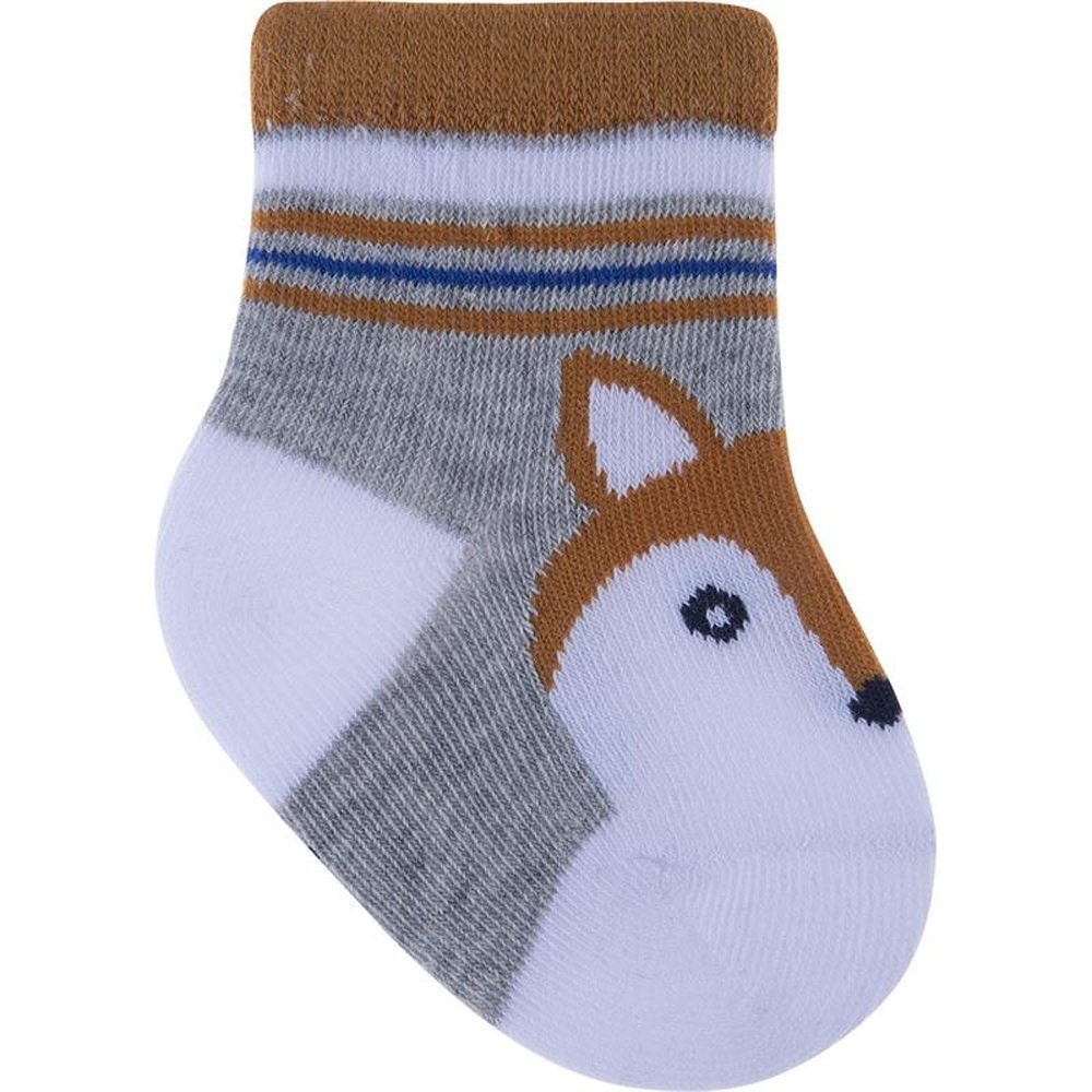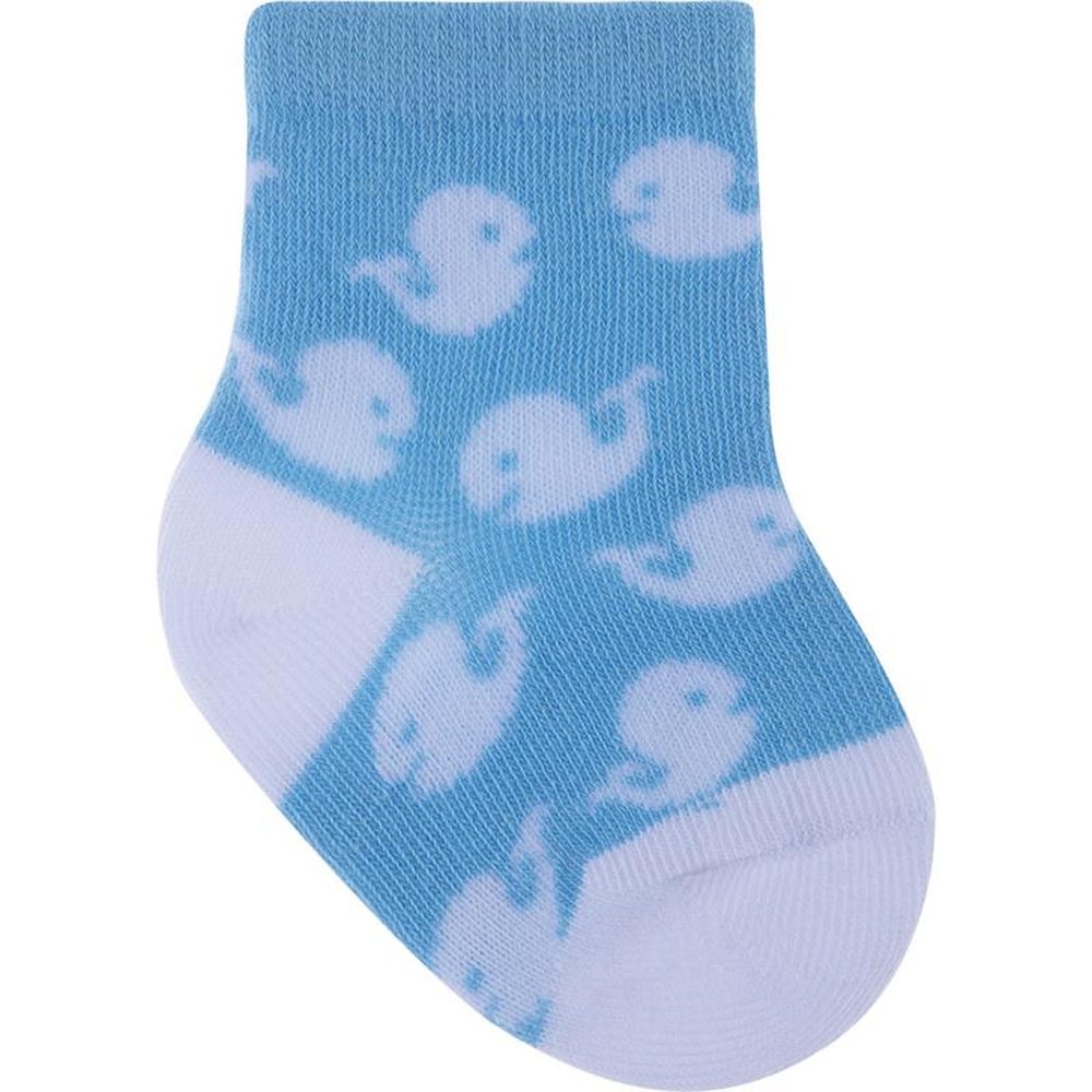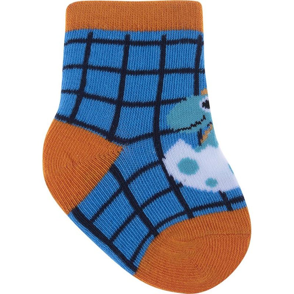Kit com 24 pares, sendo 4 Azul/Baleias, 4 Cinza/Raposa, Azul/Cachorro, 4 Azul/Ursos, 4 Azul/Coruja e 4 Azul/Dinossauro. Meia colorida é confortável com cores e estampas divertidas e variadas.