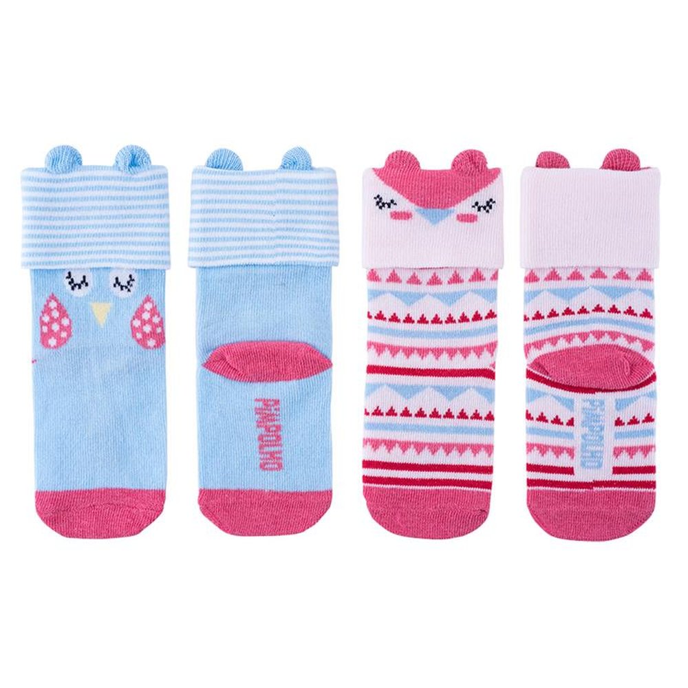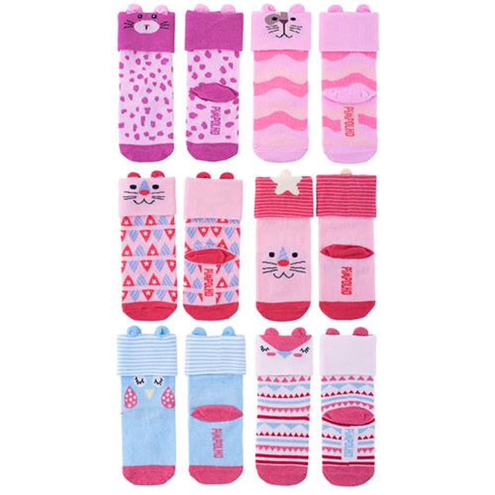 Polibag com 12 Kits, sendo: 4 Cachorrinho/Gatinho, 4 Gatinho/Estrelinha e 4 Corujinha/Passarinho. A meia lúdica pimpolho, é macia e confortável, tem acabamento divertido com detalhes que compõem a estampa da meia. Kit composto por dois pares de meia cano médio com vira e estampas sortidas.