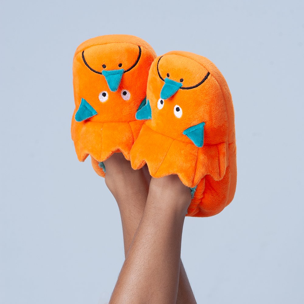 Kit Pantufa Play Laranja/Dinossauro Masculino Pimpolho Com 3 Pares - Numeração 28 A 33