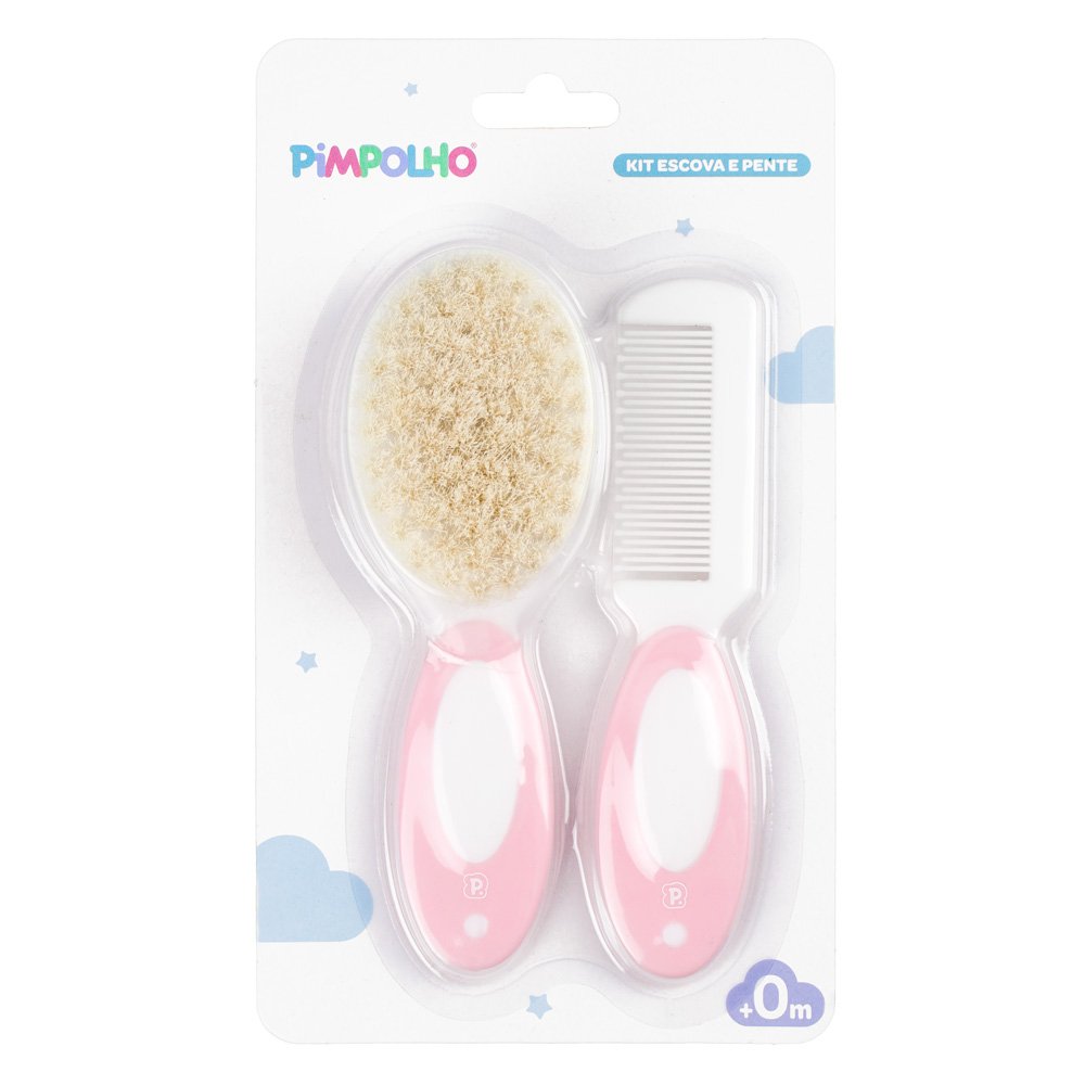 O kit e composto por uma escova de cerdas macias e naturais confeccionadas em lã, e um pente que auxiliam os cuidados do bebe na primeira infancia. Seu cabo e emborrachado e antiderrapante. Caixa com 12 Unidades, sendo: 3 Rosa, 3 Azul, 3 Cinza e 3 Branco.