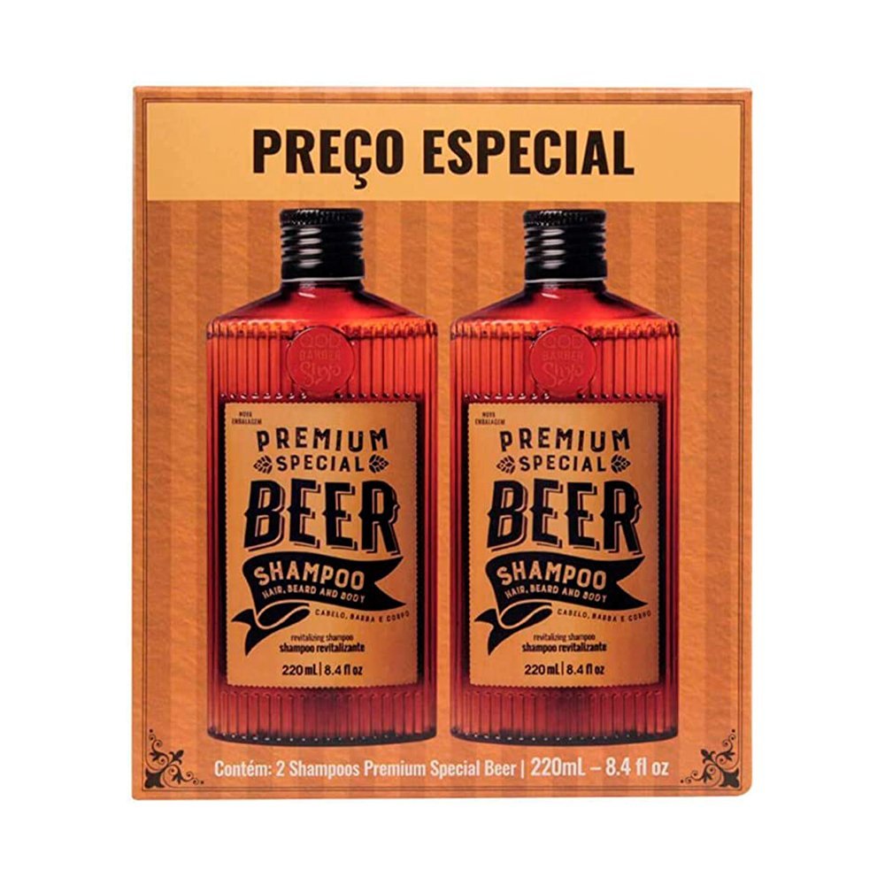 Kit 2 Shampoo Qod Special Beer Barba Cabelo Corpo 220ml