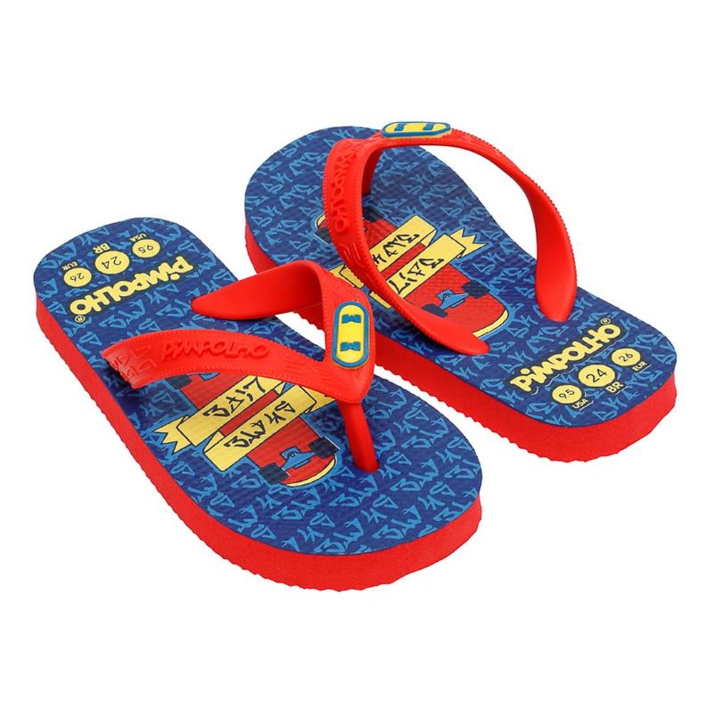O Chinelo Pimpolho possui solado estampado e com alta absorção de impacto e umidade, é flexível e produzido em EVA, que o torna leve e confortável. Suas tiras têm marca em alto relevo e divisor de dedos. Grade: 12 pares (24 - 2 pares) (25/6 - 2 pares) (27/8 - 3 pares) (29/0 - 3 pares) (31/2 - 2 pares)