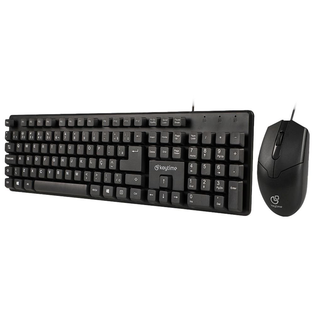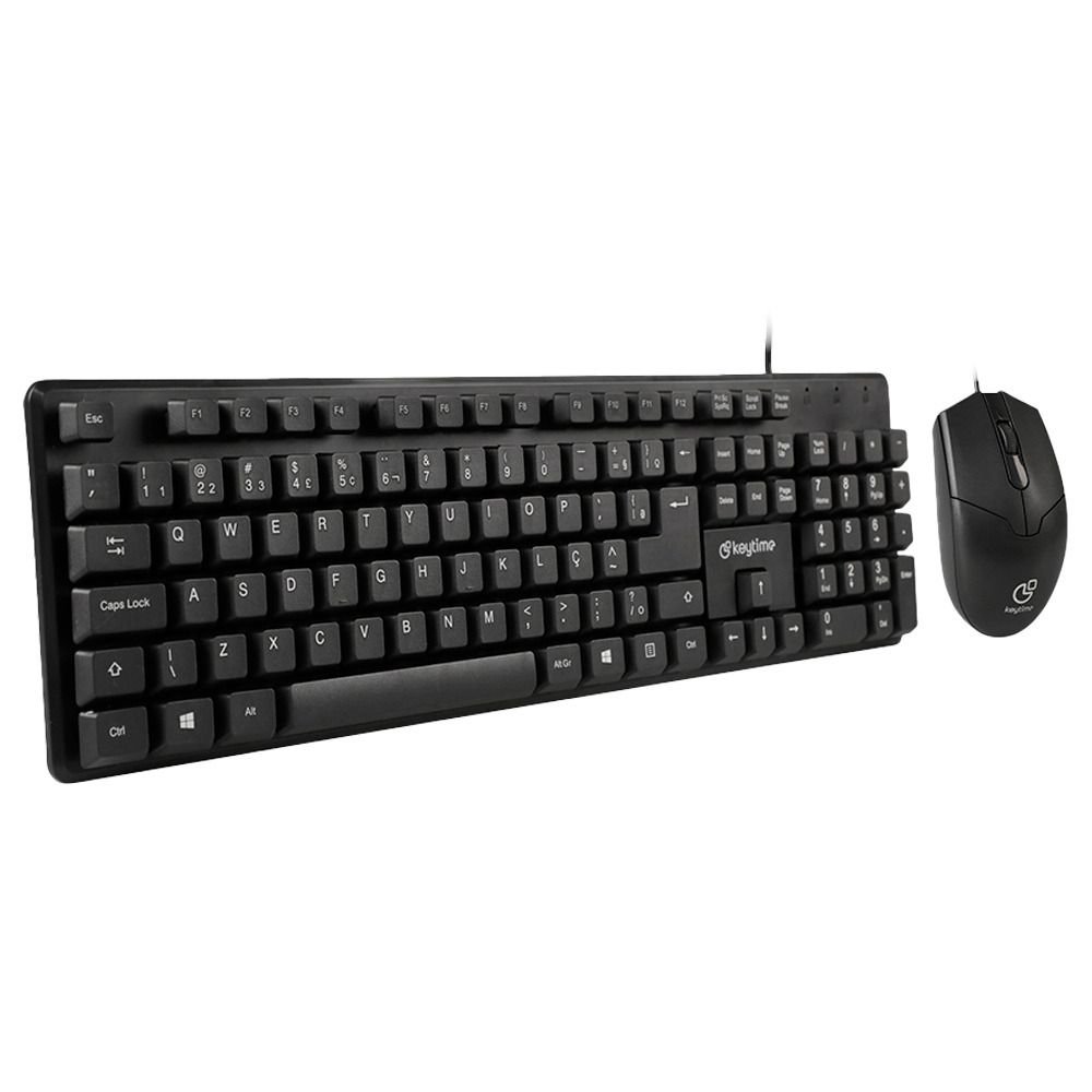 Kit Teclado E Mouse Keytime Office Minimal Abnt 2 12 Teclas Multimídia 1000Dpi Cabo 1,3M Preto - Kyt00015