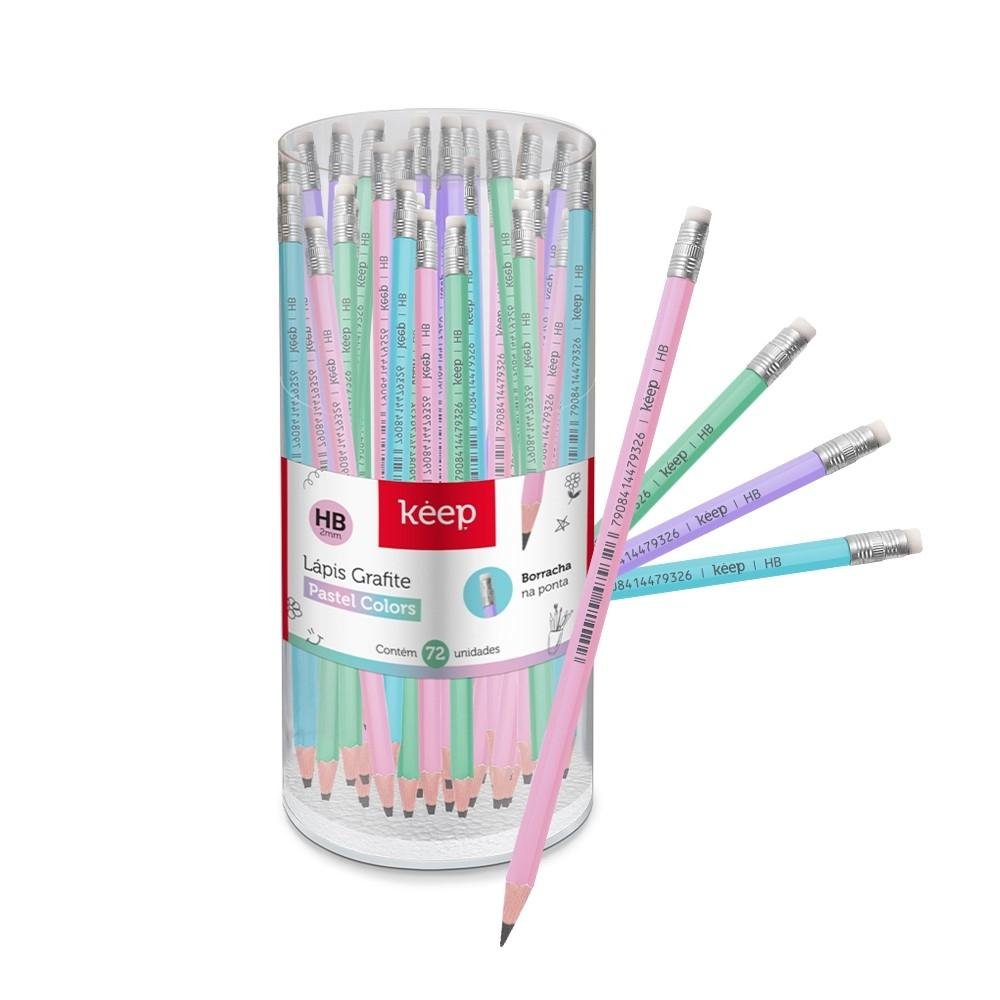 Lapis Preto Grafite HB Pastel com Borracha Pote Com 72 Unidades Keep - EI104