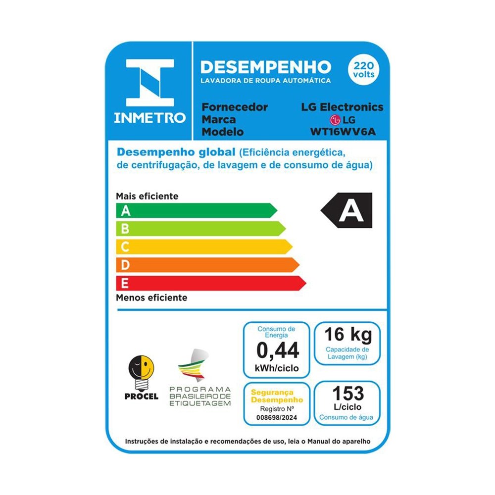 Máquina de Lavar Roupas Automática LG WT16WV6A - 16Kg, Wi-Fi, Branca, 220V