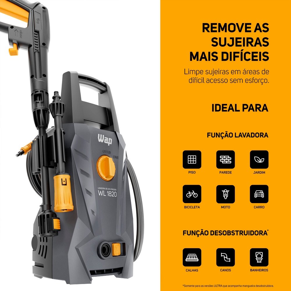 Lavadora de Alta Pressão Wap WL 1820 - 1500PSI, 1400W, Preto, 220V