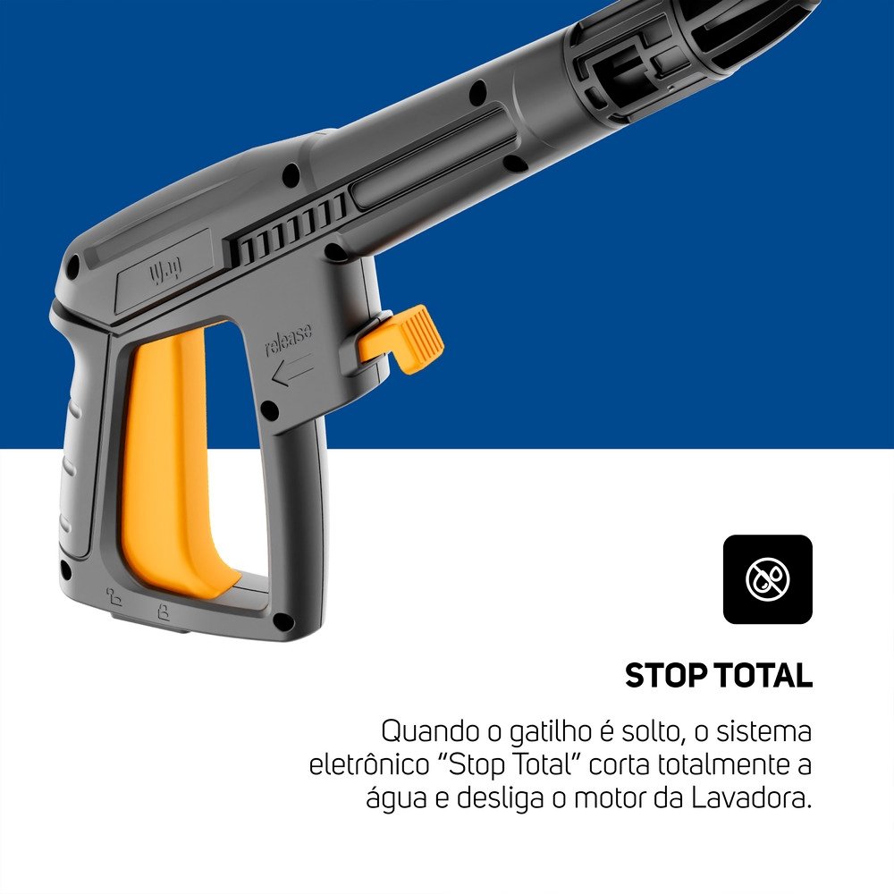 A alta pressão de 1500 PSI garante uma limpeza profunda, transformando tarefas desafiadoras em fáceis.