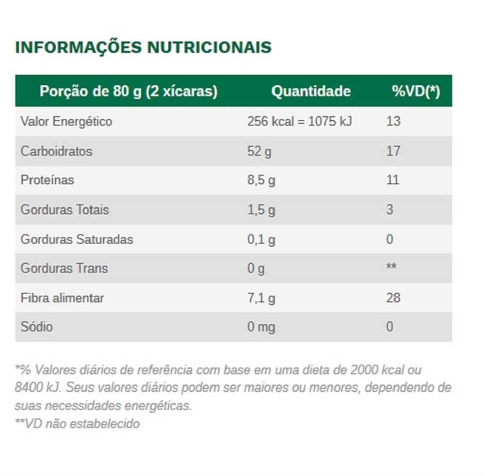 Ingredientes: Farinha de trigo integral enriquecida com ferro e ácido fólico