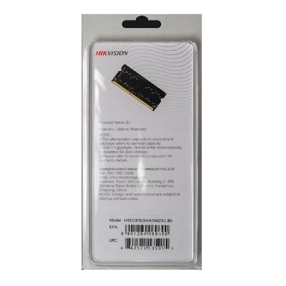 Memória Hikvision S1 8Gb 3200Mhz Ddr4 1.2V Para Notebook