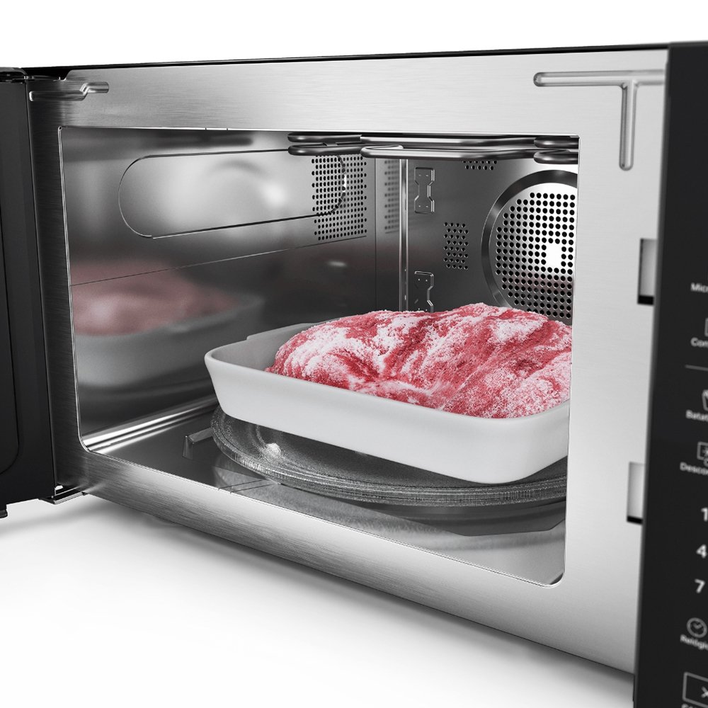 Mais comodidade no seu dia a dia. Observe pelo visor do micro-ondas o cozimento em tempo real, permitindo o ponto perfeito.