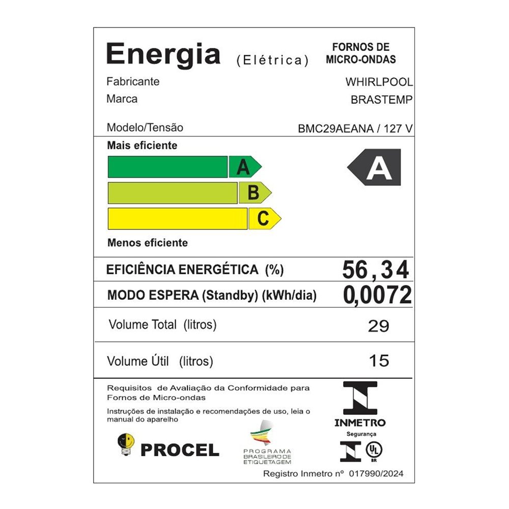 Micro-Ondas Brastemp 29 Litros BMC29AE - Função Air Fryer, 900W, Preto, 110V