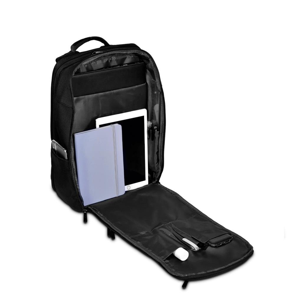 A Mochila Goldentec Prime Preto é a escolha ideal para transportar notebooks de até 15,6 polegadas com segurança e estilo. Confeccionada em nylon de alta resistência, ela oferece durabilidade e proteção contra impactos, além de um interior acolchoado para garantir a segurança do seu equipamento. Seu design conta com uma alça superior, 3 bolsos frontais, um bolso traseiro, um bolso lateral, dois compartimentos para notebook e suporte para óculos, além de apoio acolchoado para as costas que proporciona ergonomia mesmo em longos trajetos. Ela também conta com porta-cartão, porta-celular, porta-documentos e divisória extra para tablets. Descubra sua praticidade, especialmente na hora de viajar. Com uma abertura de 180 graus, ela oferece acesso fácil e rápido a todos os seus pertences, permitindo que você organize seus itens de forma eficiente. Além disso, a mochila conta com uma alça traseira inteligente que se encaixa perfeitamente em malas de rodinha, facilitando seu transporte em aeroportos e estações. A parceira perfeita para acompanhar você em todas as aventuras.