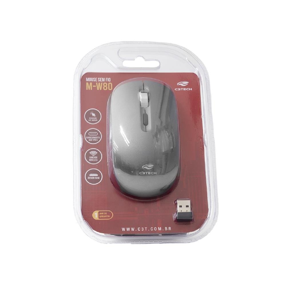 Mouse Sem Fio C3tech M-W80gy, 1600 Dpi, 4 Botões, Cinza
