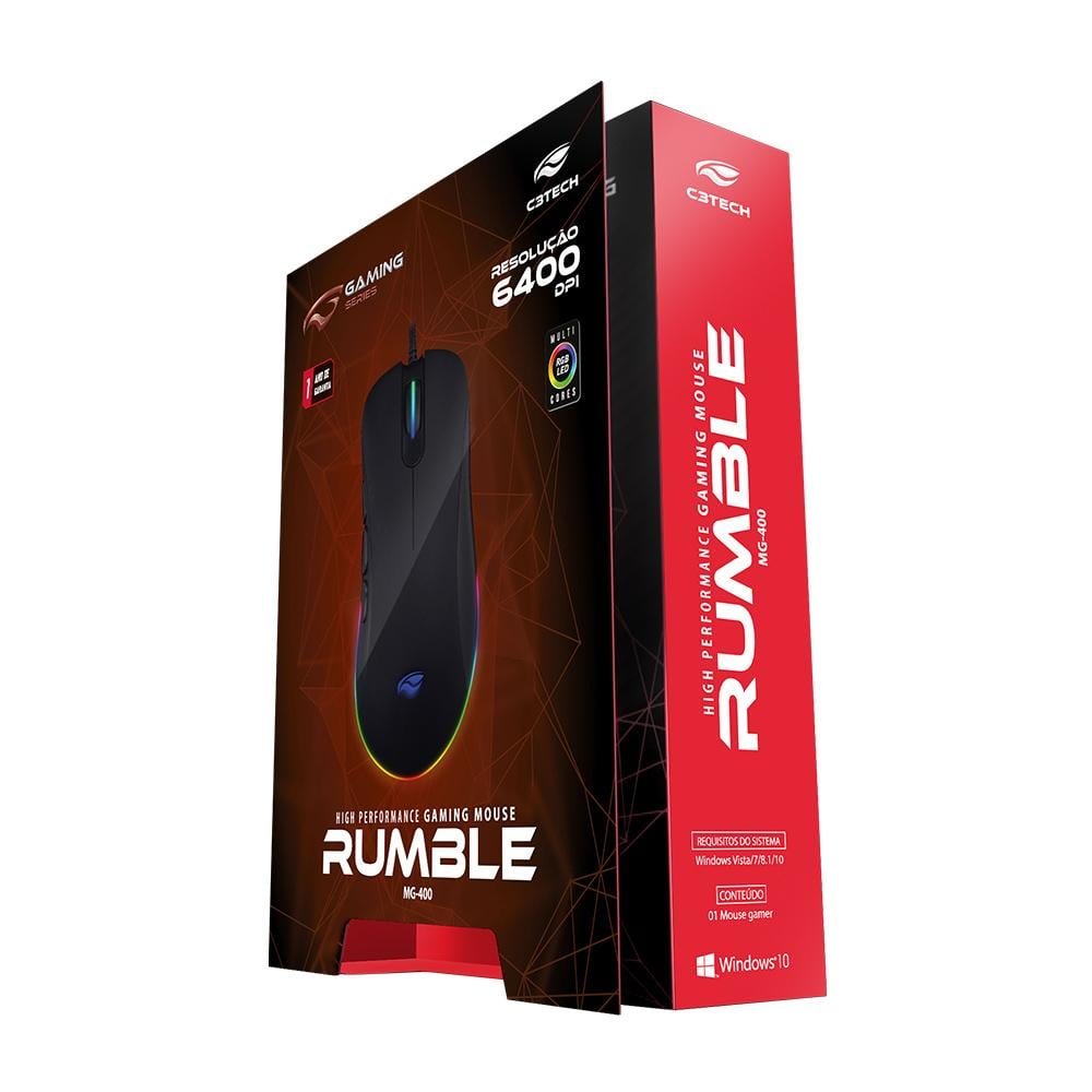 Rumble e o showman perfeito que voce nao sabia que precisava. cada detalhe deste mouse foi minuciosamente pensado: sensor preciso e confiavel, botoes estrategicamente posicionados, acabamento em borracha da mais alta qualidade, curvatura diferenciada para proporcionar maior conforto. ainda conta com software de configuracao, suporte a macros e diferentes modos de iluminacao. rumble nao e mais um mouse, ele faz o jogo bonito!