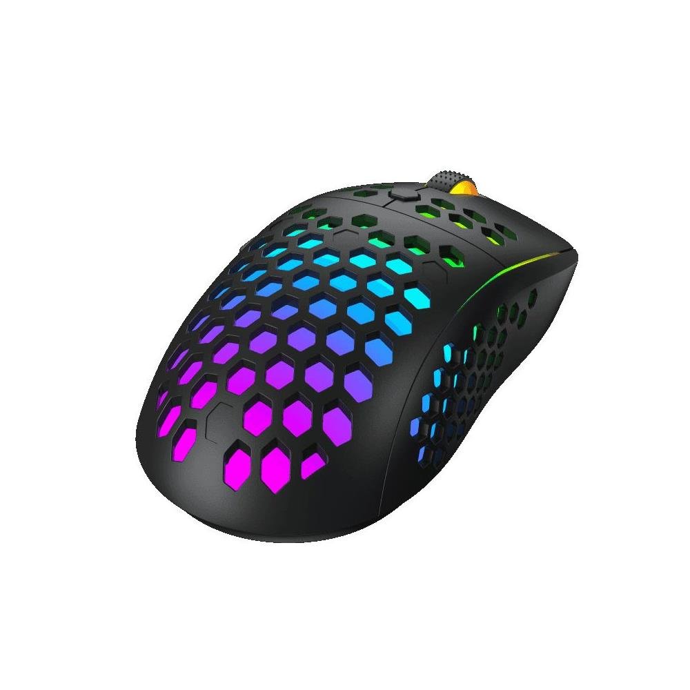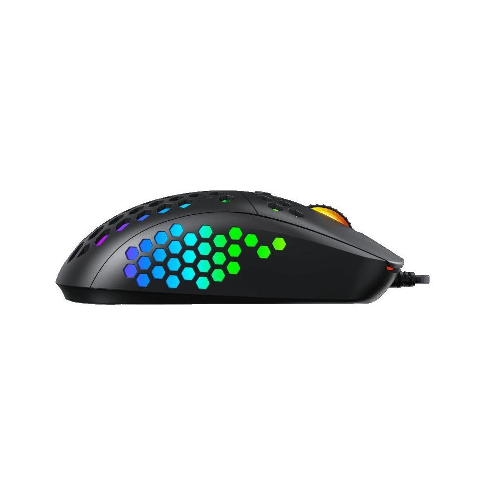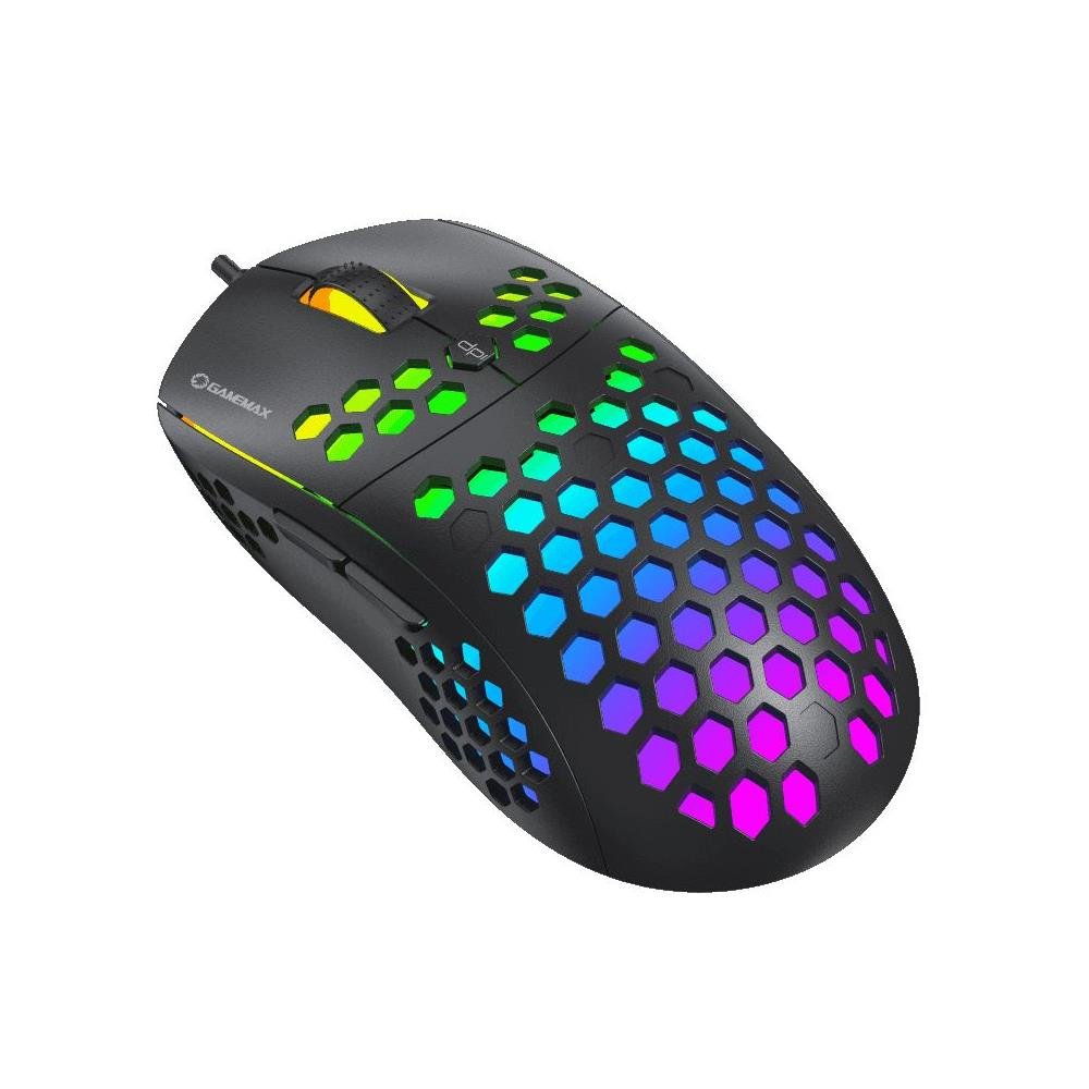 O mouse Gamemax MG8 tem foco para uso totalmente em jogos. Possui revestimento perfurado em forma de colméia, utilizando cabo ultra-leve com uso de paracord e sensor óptico de 6400 DPI além da iluminação RGB Endereçável.