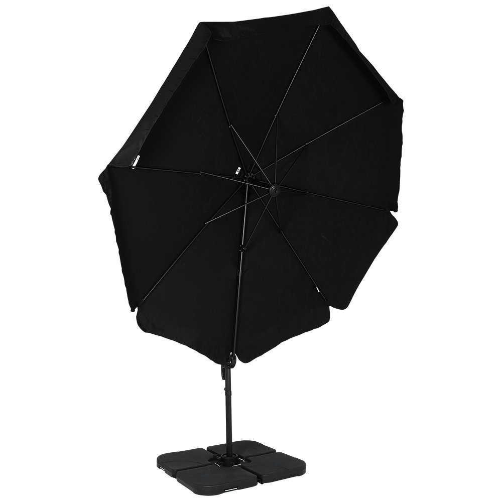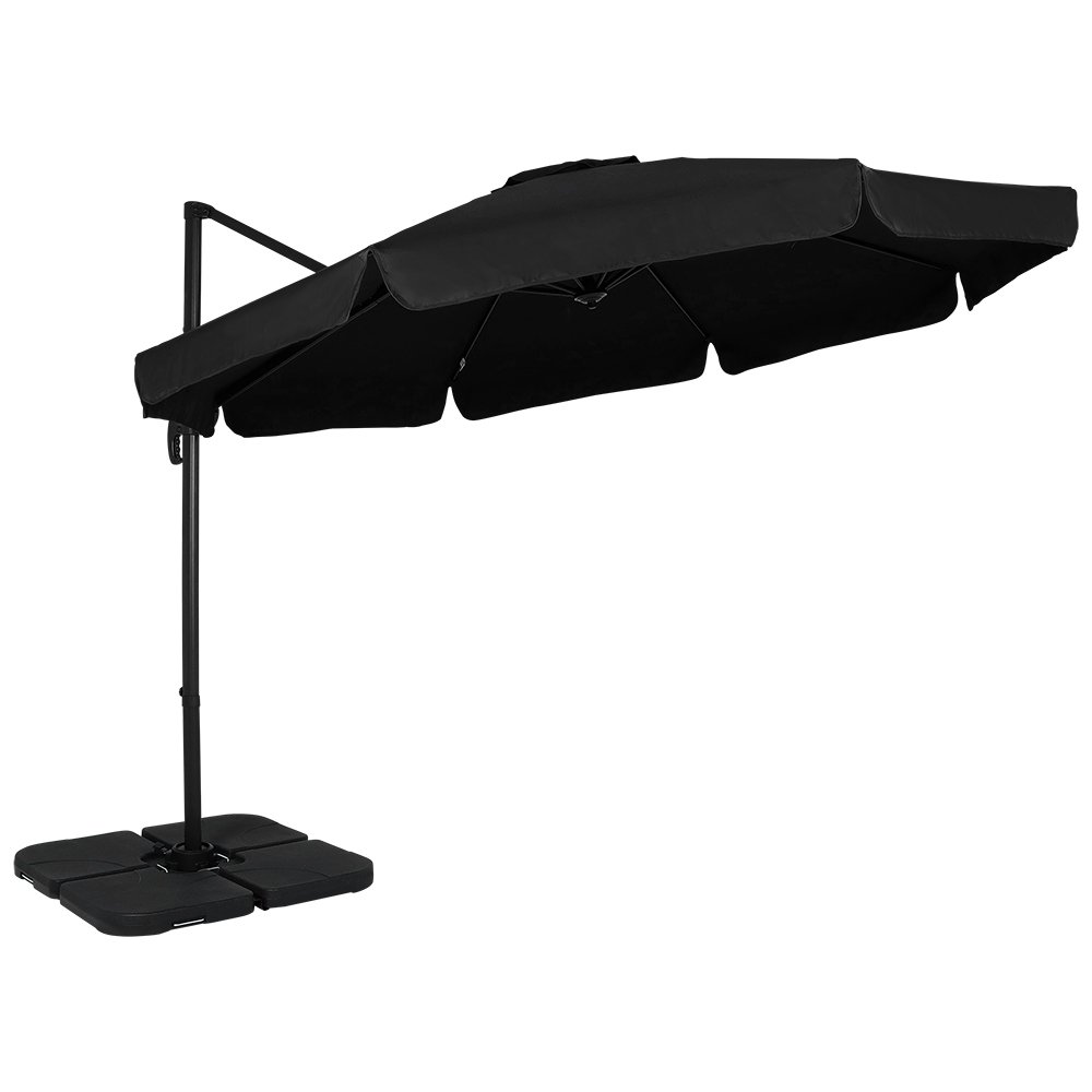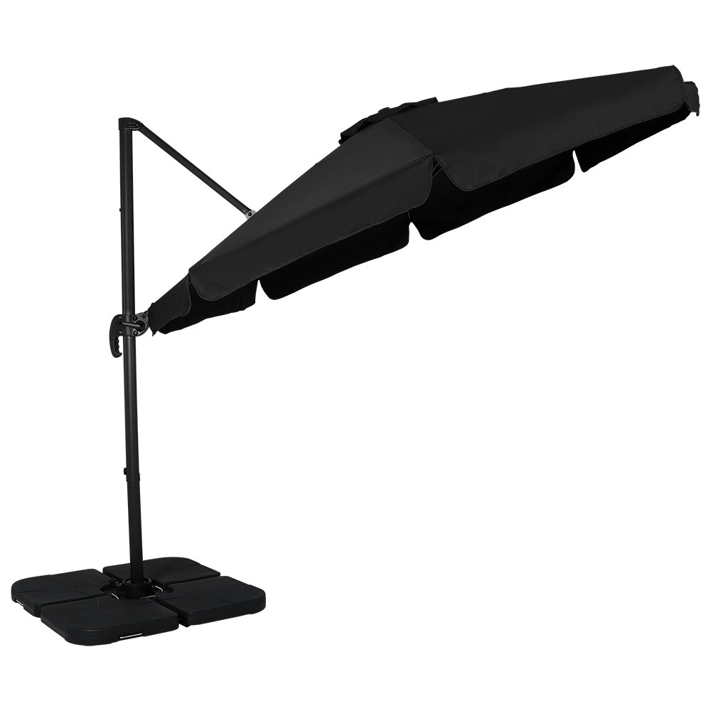 Ombrellone Suspenso Articulado Giratório Sicília 3 Metros Preto + Base Em Abs 50 Litros Preta Bel