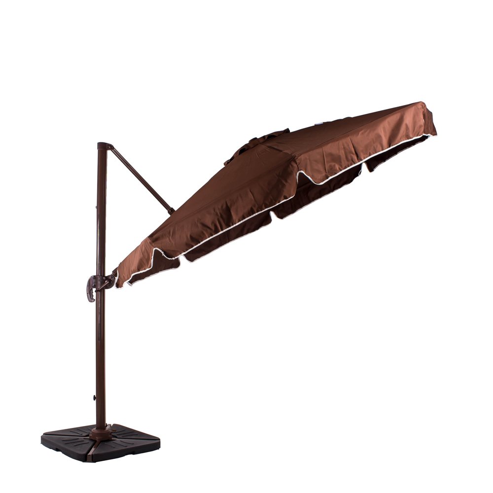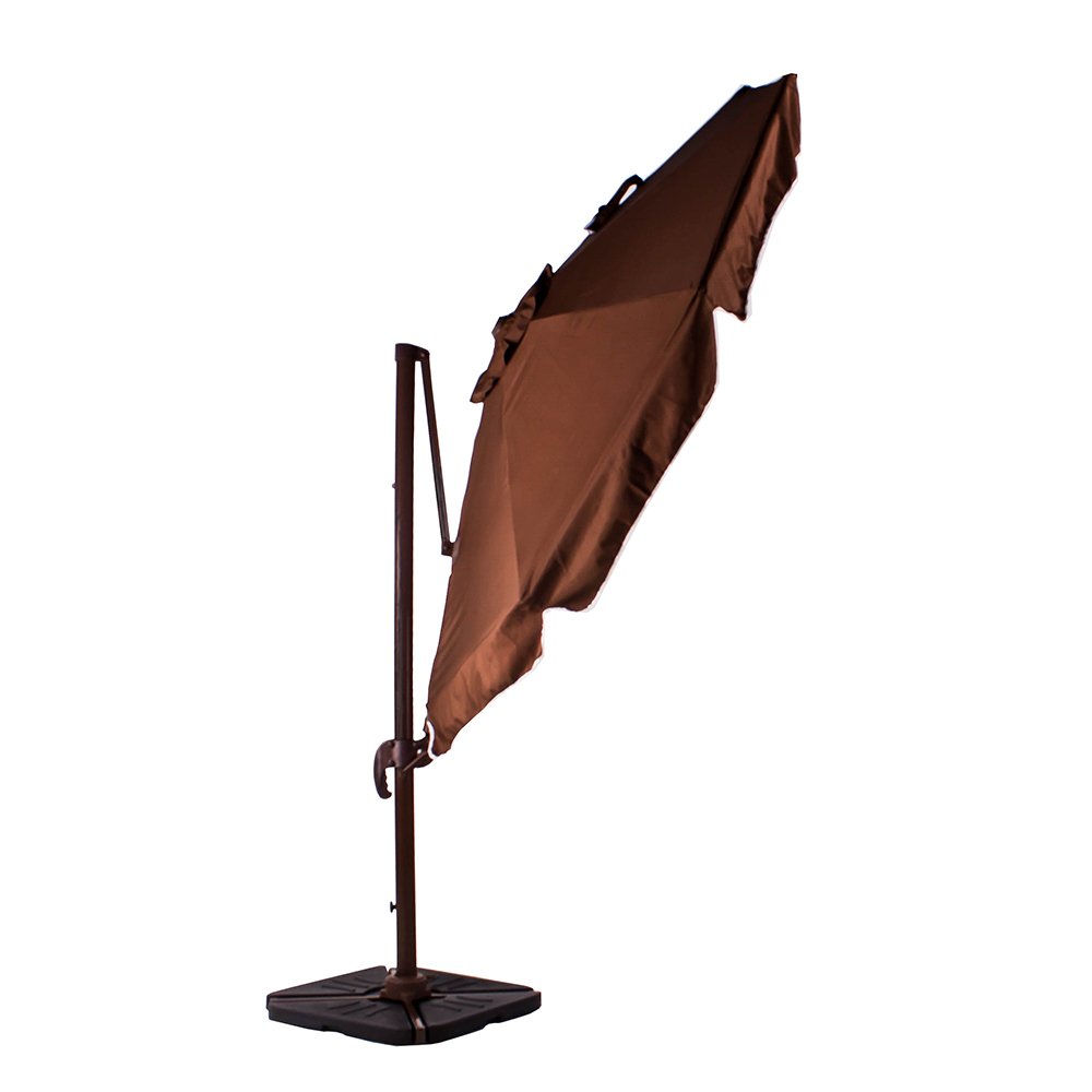 Ombrelone Suspenso Sicília Articulado Giratório 3,00M Marrom + Base Em Abs 50 Litros Preta Bel