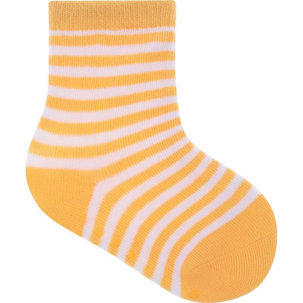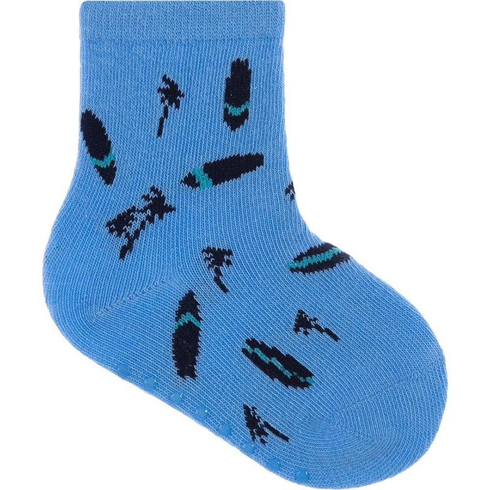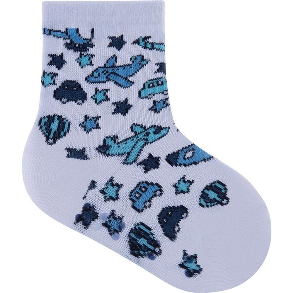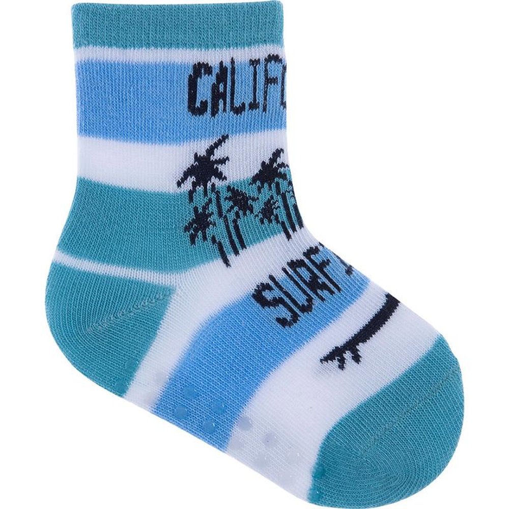 Caixa com 6 kits de 3 pares cada, sendo 2 (marinho ondas, azul surf, branco listrado), 2 (marinho listras, azul aviao, branco carros) e 2 (branco carro, branco carros, amarelo listras). Meias coloridas, sendo 3 pares em um tag temático, com estampas coloridas e divertidas. Para maior durabilidade, ler as instruções de lavagem na embalagem.