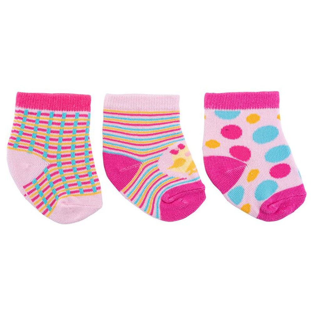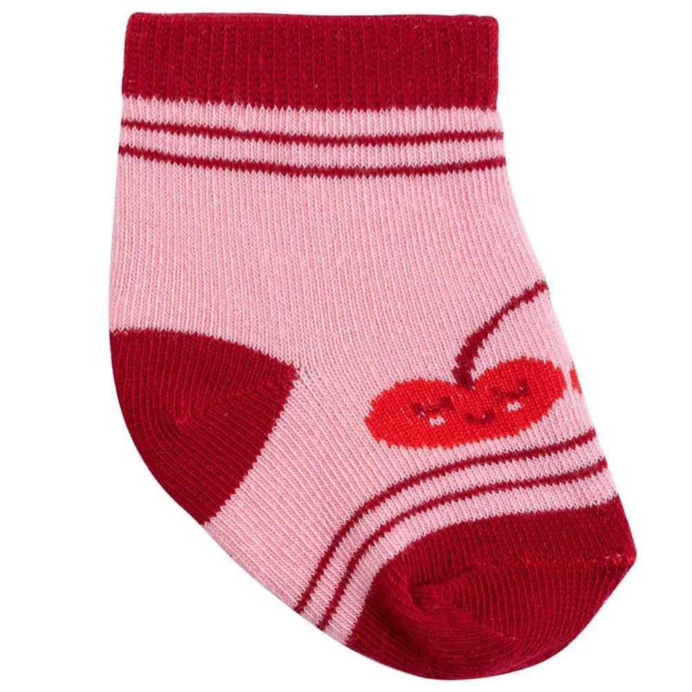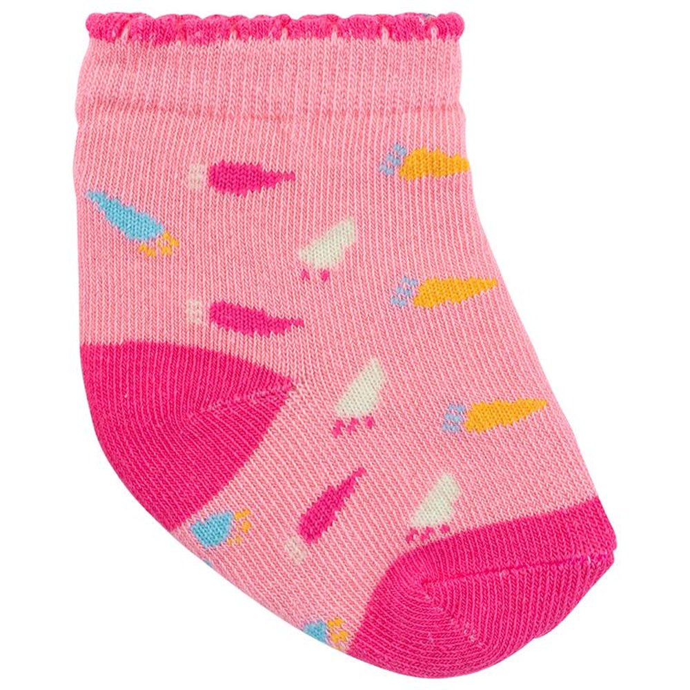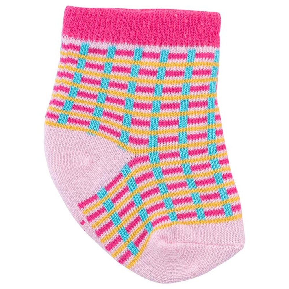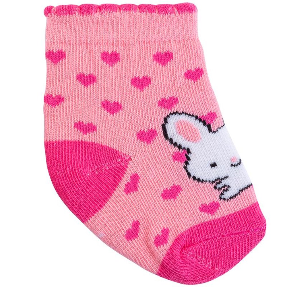 Polibag com 6 kits de 3 pares cada, sendo: 2 Xadrez Rosa/Passarinho Rosa/Bolas Rosa, 2 Joaninha Vermelha/Flor Vermelha/Cereja Vermelha e 2 Cenoura Rosa/Coelho Rosa/Corações Rosa. Meias coloridas, sendo 3 pares em um tag temático, com estampas coloridas e divertidas. Para maior durabilidade, ler as instruções de lavagem na embalagem.