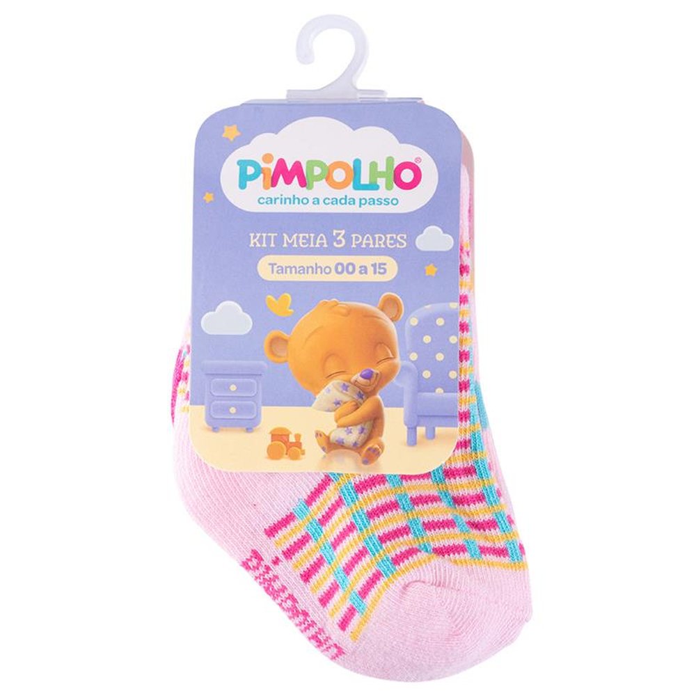 Pack Com 06 Kits Kit Meia Colorida Infantil C/3 Pares Tag 00-15 Feminino Pimpolho