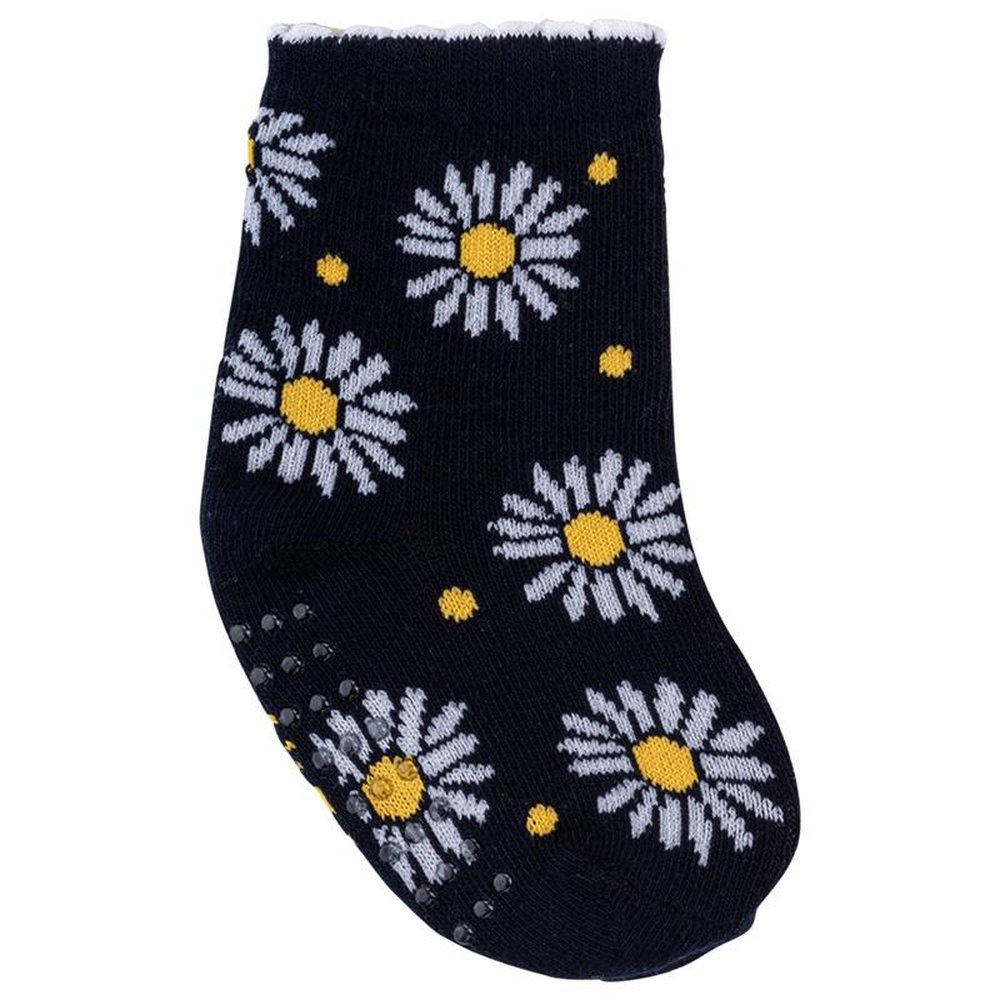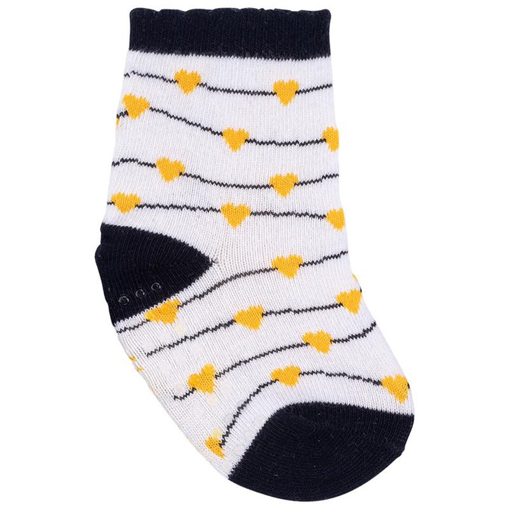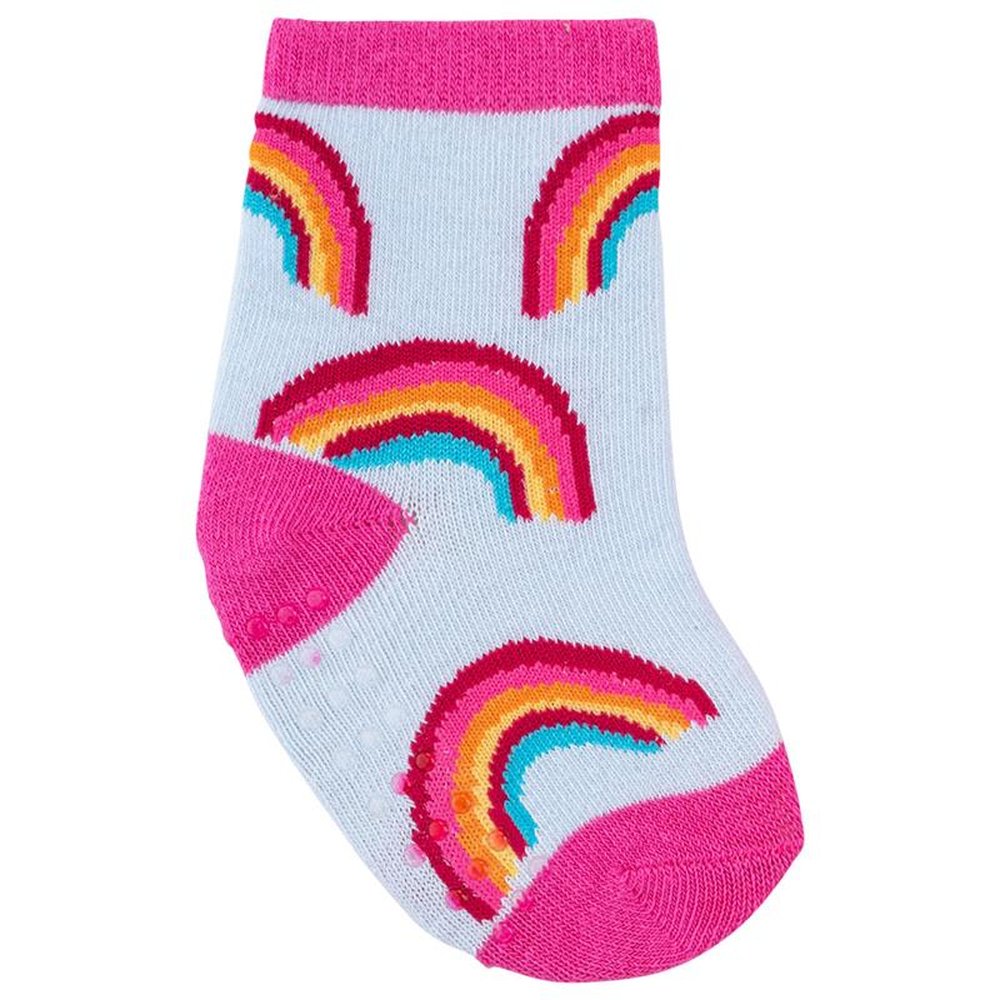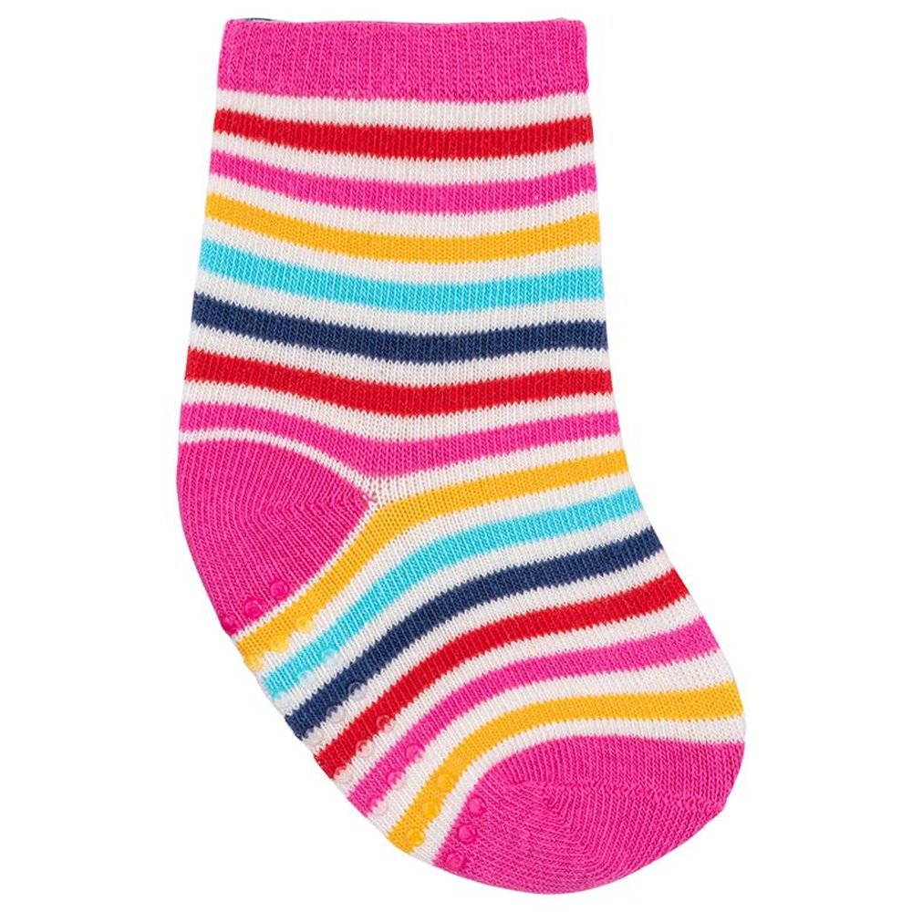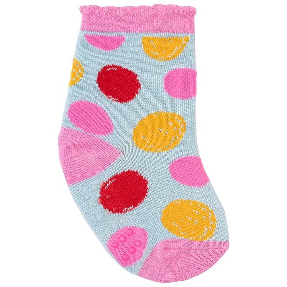 Polibag com 6 kits de 3 pares cada, sendo: 2 Onda Rosa/ Bolas Rosa/ Losangulo Vermelho, 2 Arco-Iris Azul/ Confeti Amarelo/ Listras Rosa e 2 Margarida Azul/Listra Azul/ Corações Amarelo. Meias coloridas, sendo 3 pares em um tag temático, com estampas coloridas e divertidas. Para maior durabilidade, ler as instruções de lavagem na embalagem.
