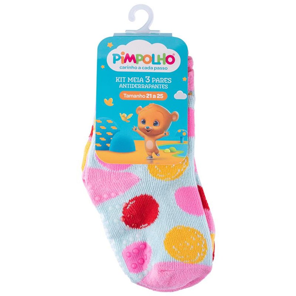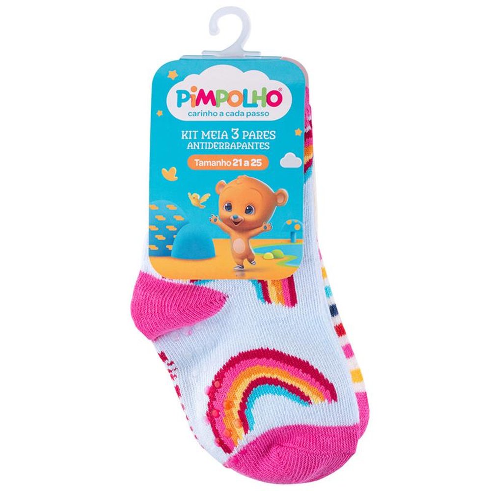Pack Com 06 Kits Kit Meia Colorida Infantil C/3 Pares Tag 21-25 Feminino Pimpolho