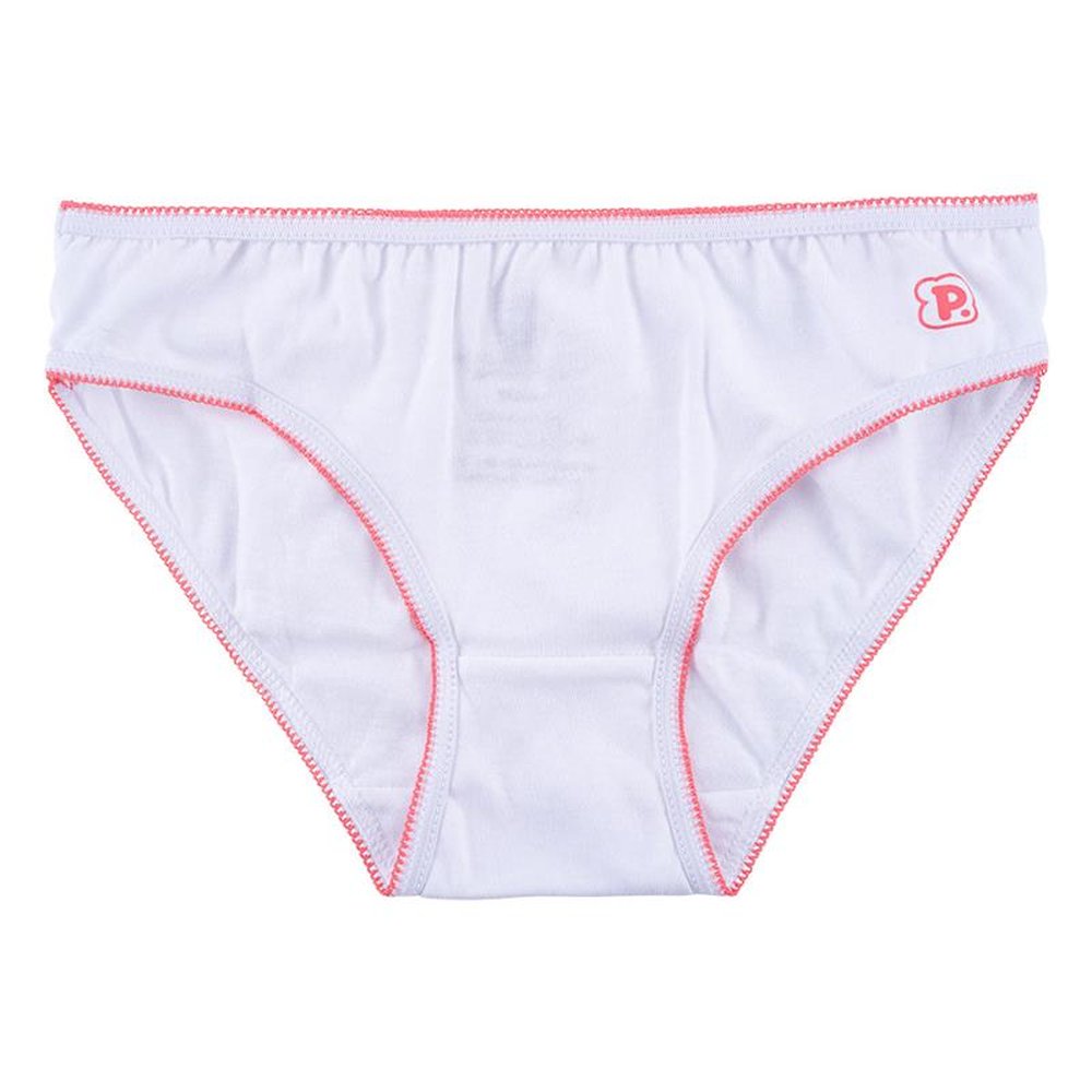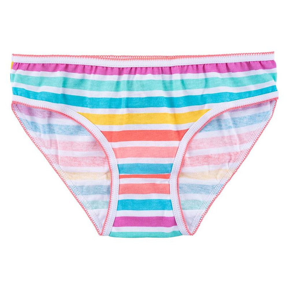 Polybag com 6 kits de 3 unidades cada, sendo: 2 Rosa/Listras/Branca, 2 Rosa/Unicornio/Azul e 2 Rosa/Arco iris/branca. O kit de calcinhas Pimpolho e composto por 3 pecas com cores variadas e estampas exclusivas. Contam ainda com acabamento em elastico e forro em algodão, o que proporciona mais conforto e seguranca na hora de usar. Sua pequena vai amar!