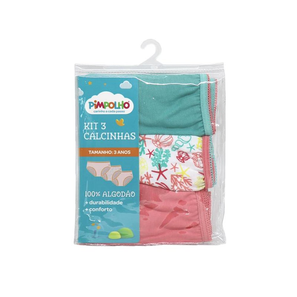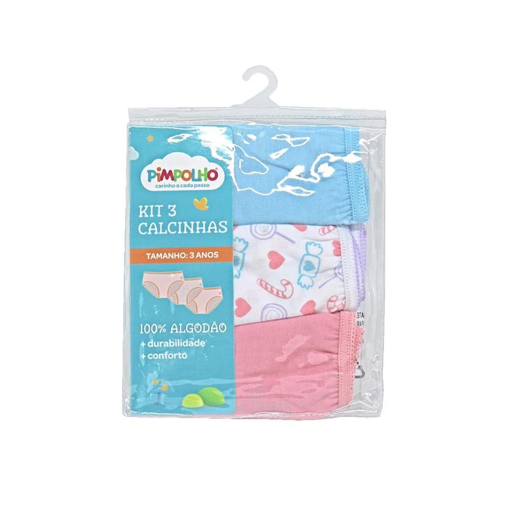 Pack Com 6 Kits Calcinha Infantil Cada kit Com 3 Peças Tamanho 04 Anos Feminino Pimpolho.