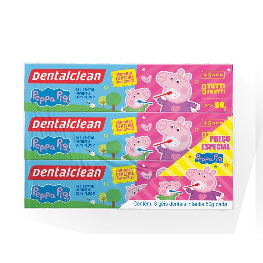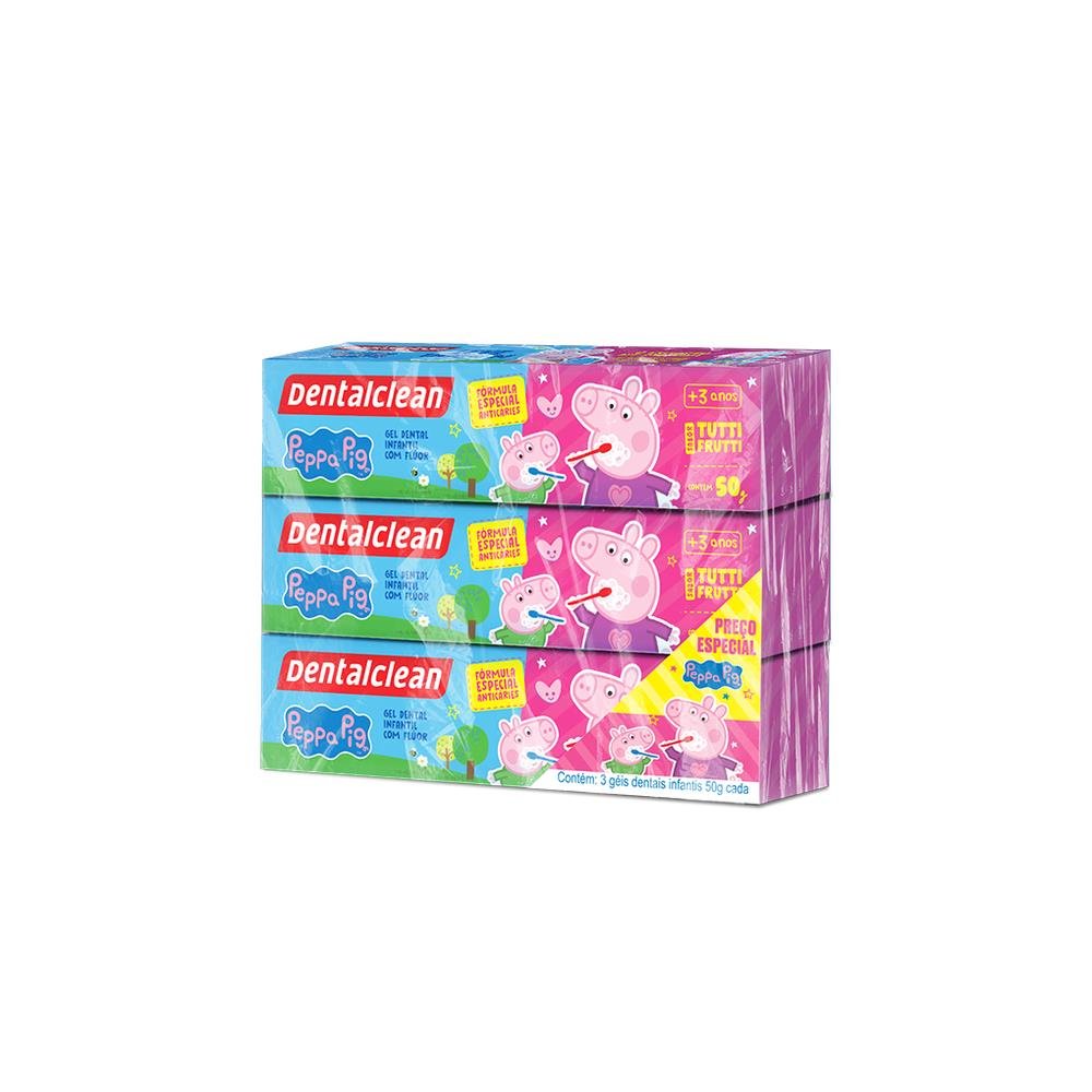 Pack Gel Dental Infantil com Flúor Tutti-Frutti Peppa Pig Dentalclean Caixa 3 Unidades 50g Cada.