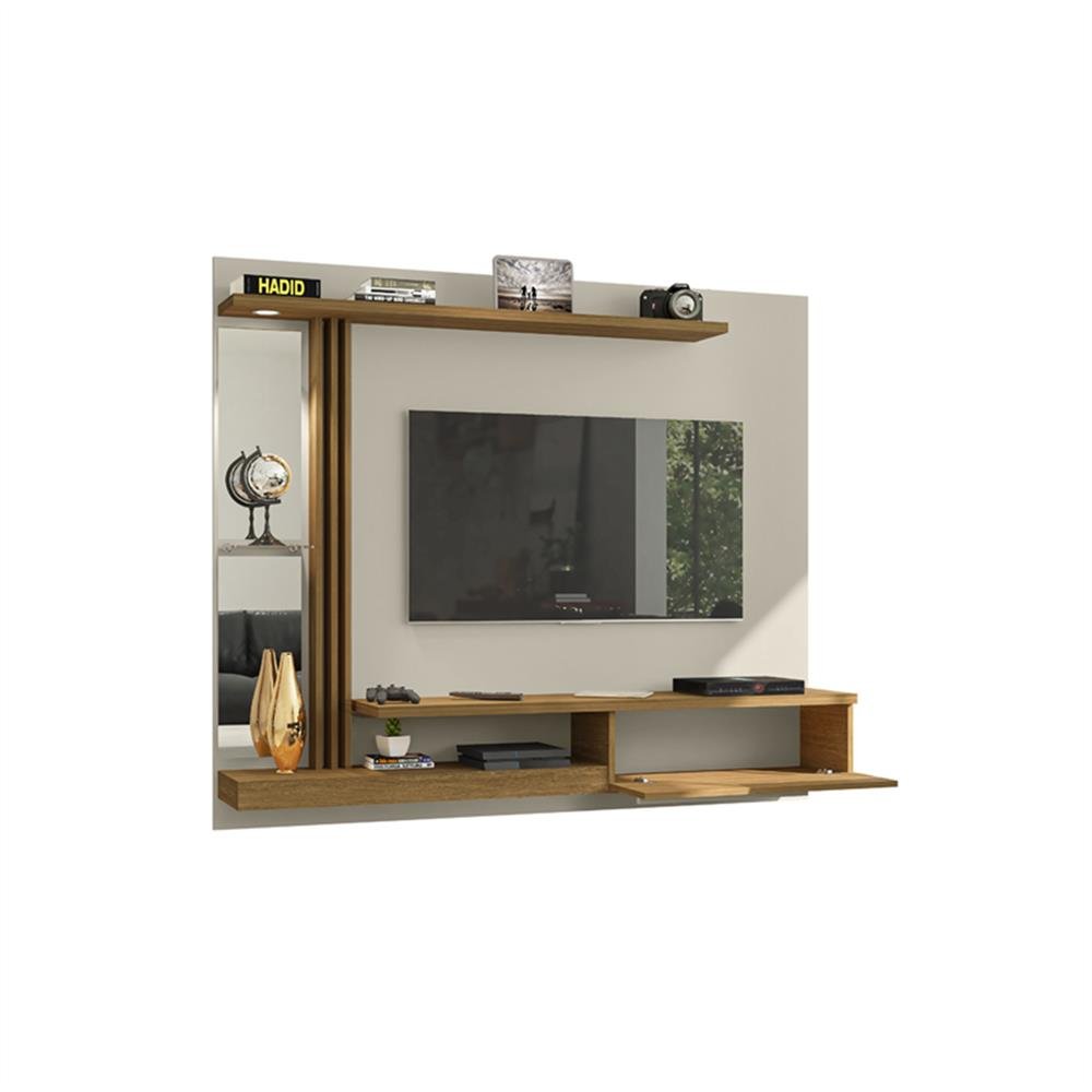alt:1360xlarg:1605xprof:90,espaco tv 55 polegadas,espelho de corativo,prateleira lateral em vidro,luz de led c/botao liga desliga,dobradicas metalicas e detalhes ripados.