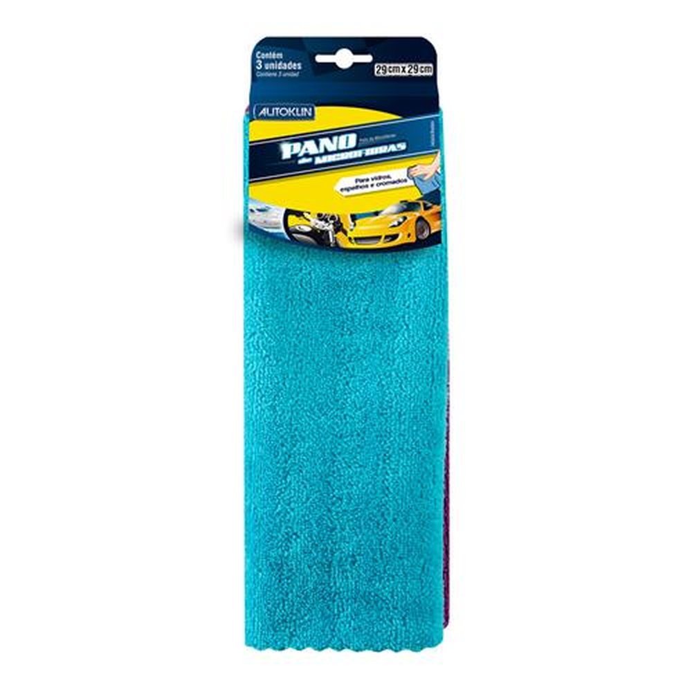 Pano Microfibra Automotivo 29x29 com 3 unidades - Marca Autoklin
