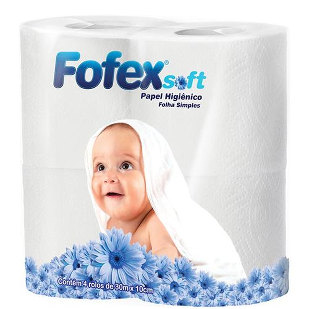 Papel Higienico Folha Simples 30M Fofex Soft Azul - 16X1X4Unidades