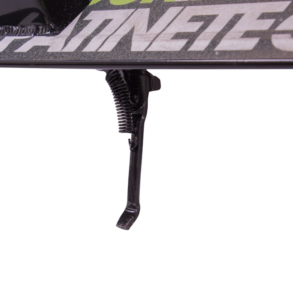 Possui sistema de freios na roda traseira e pé de apoio