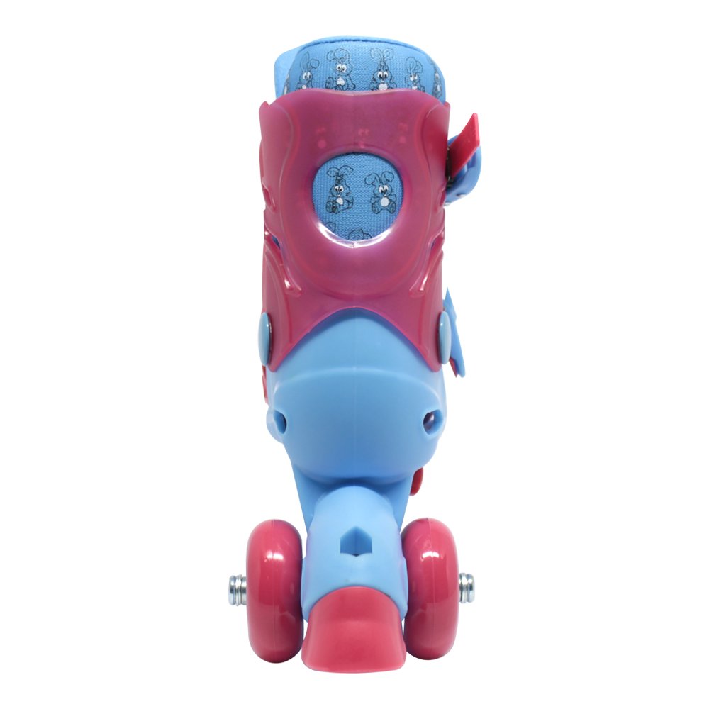 É rico em detalhes! Super divertido, colorido e confortável, a criançada vai amar! Informações: In-Line (3 rodinhas em fila) e Tri-Line (2 rodinhas na parte de trás e 1 na frente) Ajuste fácil, basta apertar o botão