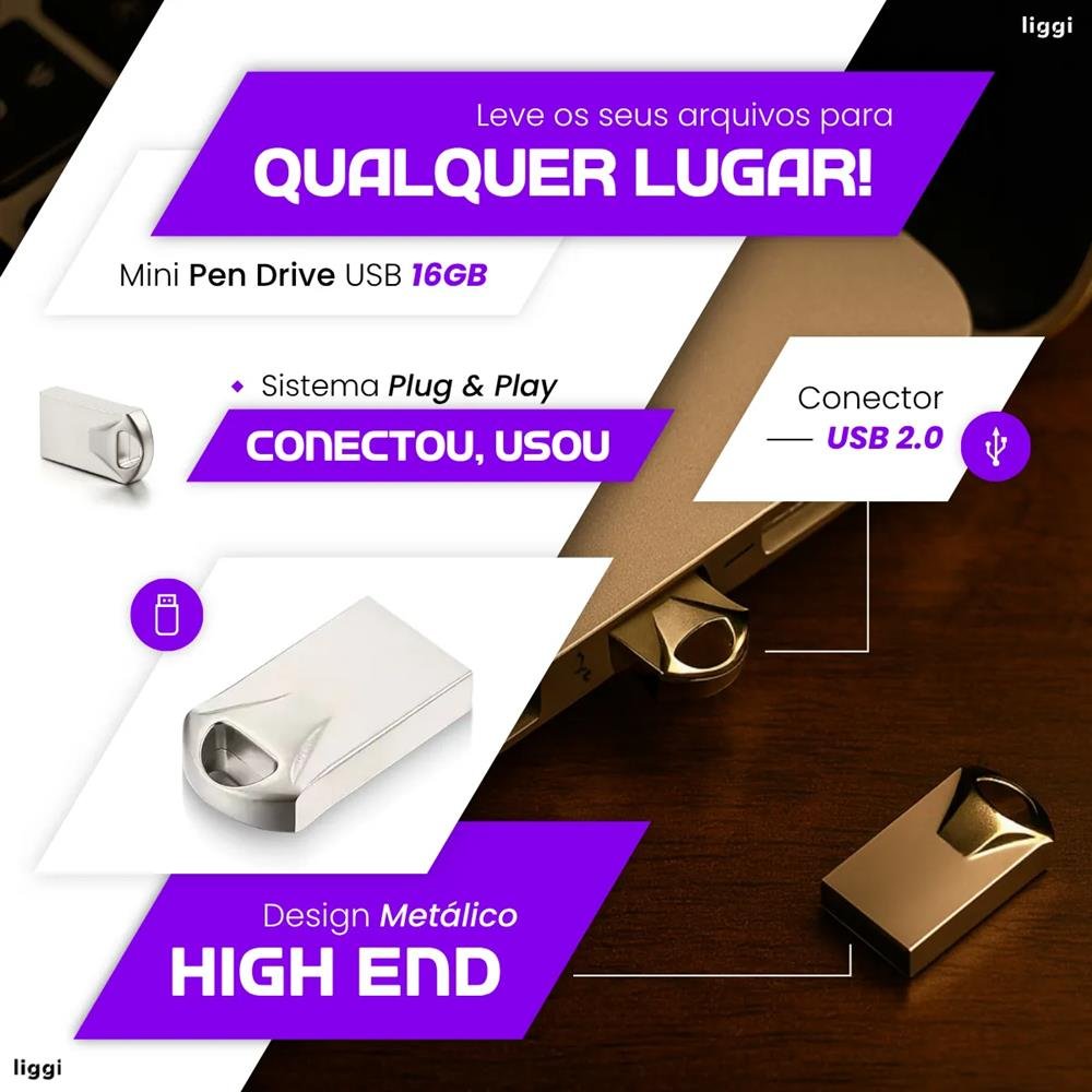 O Pen Drive LIGGI Mini 64GB combina desempenho, resistência e portabilidade em um design compacto ideal para o dia a dia. Fabri...