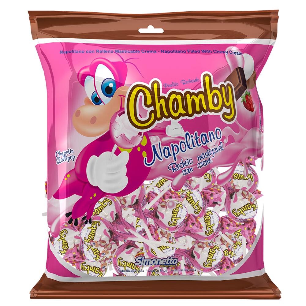 Pirulito Chamby Pop Napolitano 140g - Caixa Com 40 Pacotes