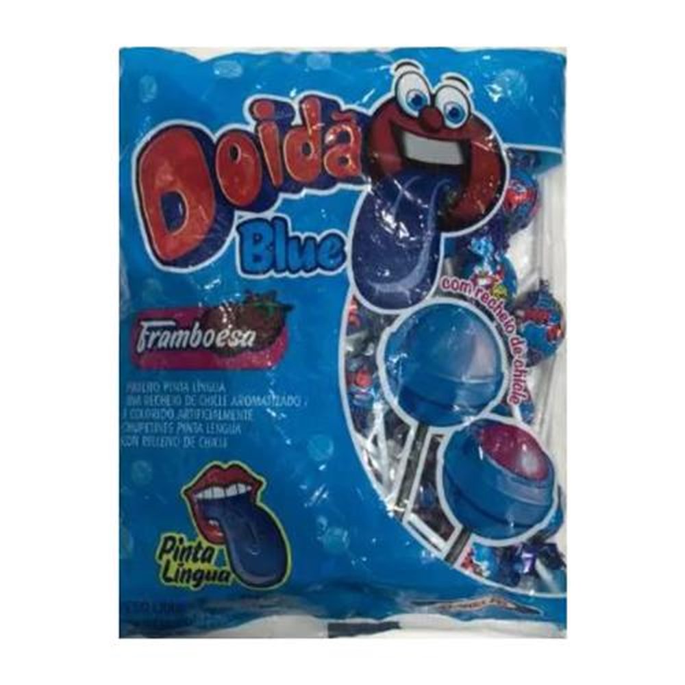 Pacote de pirulito doidão pinta bola blue com chicle santa fé 500g.