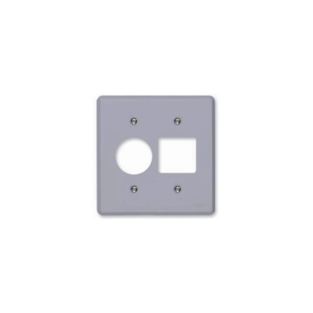 Placa 4X4 2 Teclas + Tomada Redonda Cinza Ilumi