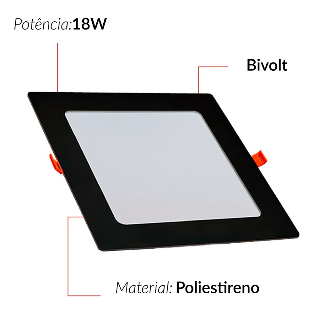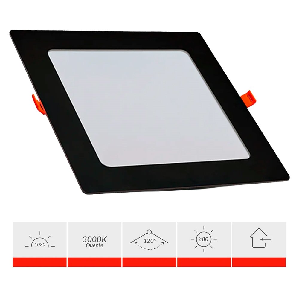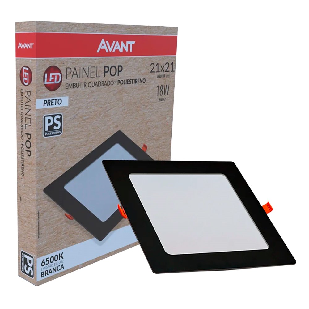 Painel Plafon LED Avant Pop Quadrado de Embutir 18W 3000K 1080 Lúmens 21cm - Placa Preta