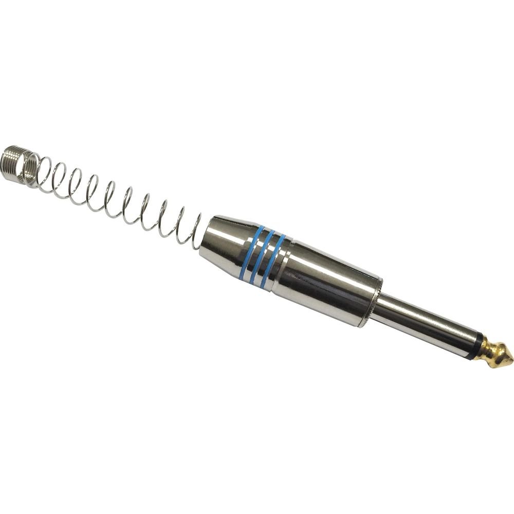 Plug P10 Mono Metal com Mola Espaçada PGPZ0027 Azul STORM Possui Ponta Gold e Mola Espaçada Características