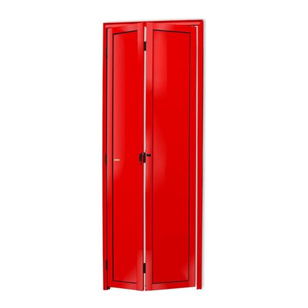 Portas de Abrir de Alumínio Linha L.25 Pintura Eletrostática Vermelho 2 Folhas de Sanfonar para o Lado Direito Lambris Horizontais Trinco e Dobradiças na Cor Preta Altura 210 Cm Largura 60 Cm Requadro 4,6 Cm Garantia de 5 anos contra defeitos de fabricação