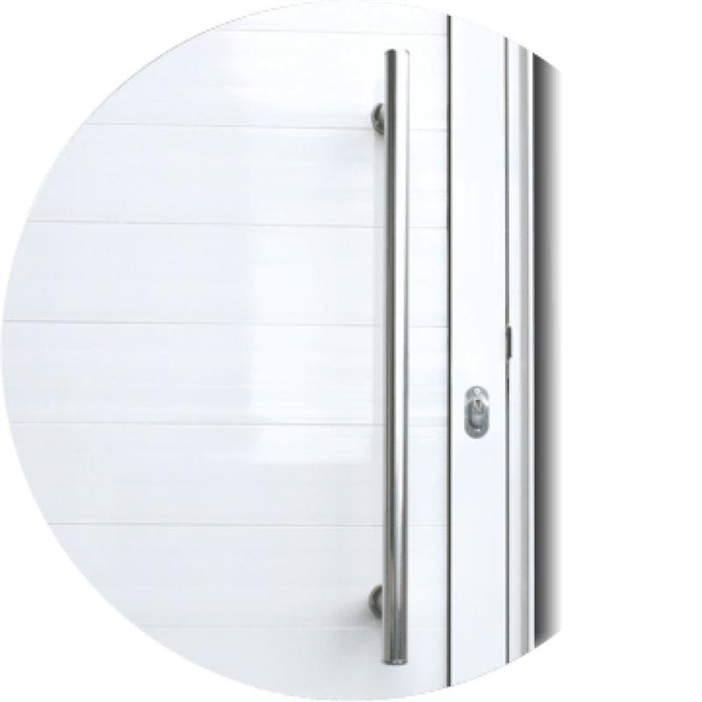 Portas de Abrir de Alumínio Linha Super 25 Pintura Eletrostática Mix Preta 1 Folha de Abrir para o Lado Direito Lambris Horizontais Puxador Londres 60 Cm Polido Altura 210 Cm Largura 90 Cm Requadro 4,6 Cm Garantia de 5 anos contra defeitos de fabricação