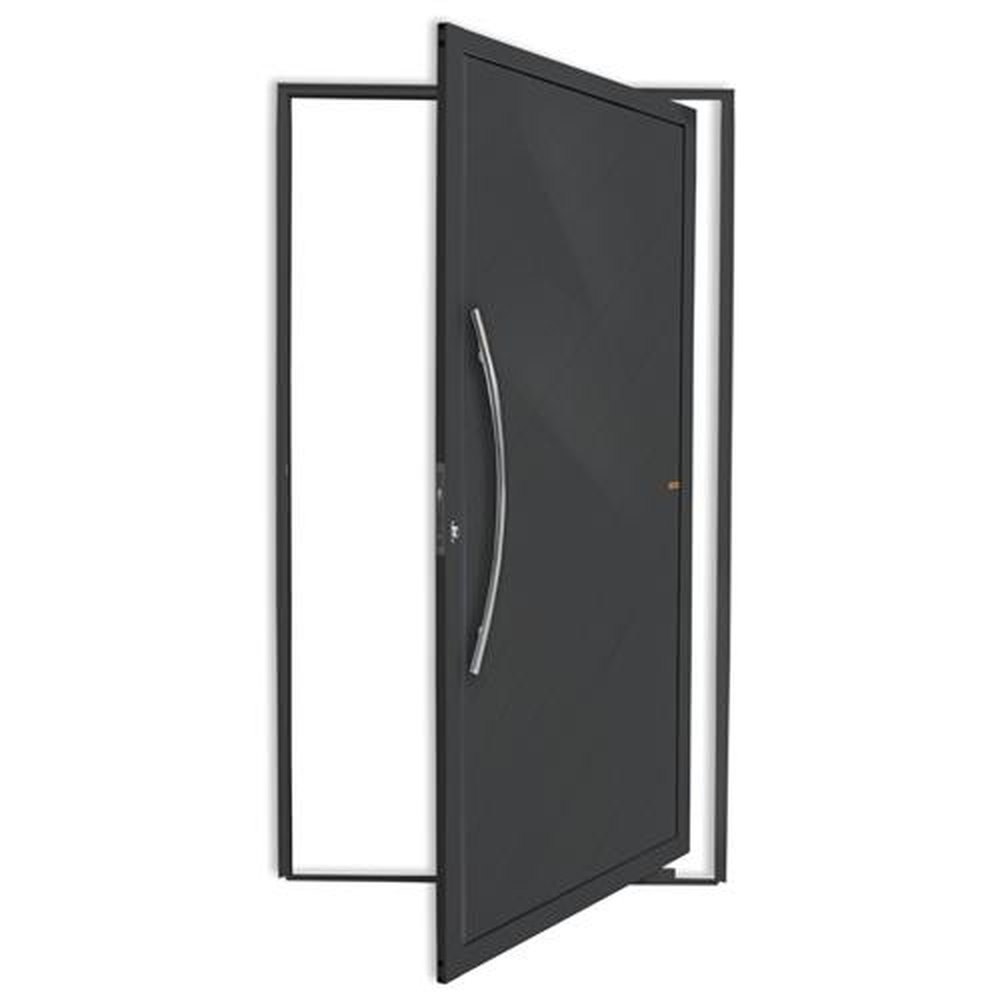 Porta Pivotante de Alumínio Linha Super 25 Pintura Eletrostática Cinza 1 Folha de Abrir para o Lado Esquerdo Lambris Diagonais Puxador Athenas 80 Cm Polido Altura 210 Cm Largura 100 Cm Requadro 4,6 Cm Garantia de 5 anos contra defeitos de fabricação