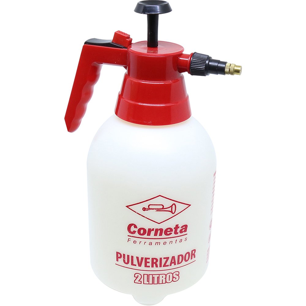 Pulverizador Manual Compressão Prévia - Dimensões Da Peça: 17 X 13,3 X 30,5Cm - Dimensões Da Embalagem: 3,5 X 17 X 13,3Cm - Quantidade Master: 15 Peças - Dimensões Master: 66,5 X 41 X 31,6Cm - Material: Plástico De Alta Resistência - Cor: Vermelho Com Branco - Tipo De Embalagem: Suporte - Marca: Corneta - Origem: Fabricado Na China Sob Supervisão Técnica Corneta Ferramentas Do Brasil. ¿ Capacidade: 2 Litros - Aplicação: ¿ Plantas: Ideal Para Aplicações De Inseticidas, Fungicidas, Soluções Naturais, Adubo Foliar E Umidificação De Plantas. ¿ Domésticos: Auxilia Na Limpeza Para Borrifar Águas Em Vidraças, Janelas, Lustres, Eletrodomésticos Entre Outros Objetos. ¿ Automotivo: Limpeza De Para-Brisas, Painel Interno, Pneus Entre Outros. - Instruções: 1. Confira Se O Bico Está Rosqueado Firmemente. 2. Encha O Pulverizador Com Líquido Até A Marca Máxima De 2 Litros. (A Quantidade De Líquido Não Pode Ultrapassar 2L, Caso Contrário O Pulverizador Não Terá Pressão Suficiente). Feche Bem A Tampa. 3. Bombeie Até Que Tenha Pressão Suficiente (Aproximadamente 30 Vezes) Pulverize Apertando A Alavanca. 4. Encaixe A Trava Do Gatilho Para Travar A Alavanca E Obter Uma Pulverização Contínua. 5. Após Usar, Gire A Tampa ¼ De Volta Para Liberar A Pressão Restante. - Atenção: ¿ Não Armazene O Pulverizador Com Pressão, E Mantenha A Trava Do Gatilho Liberada. ¿ Manter Fora Do Alcance Das Crianças.