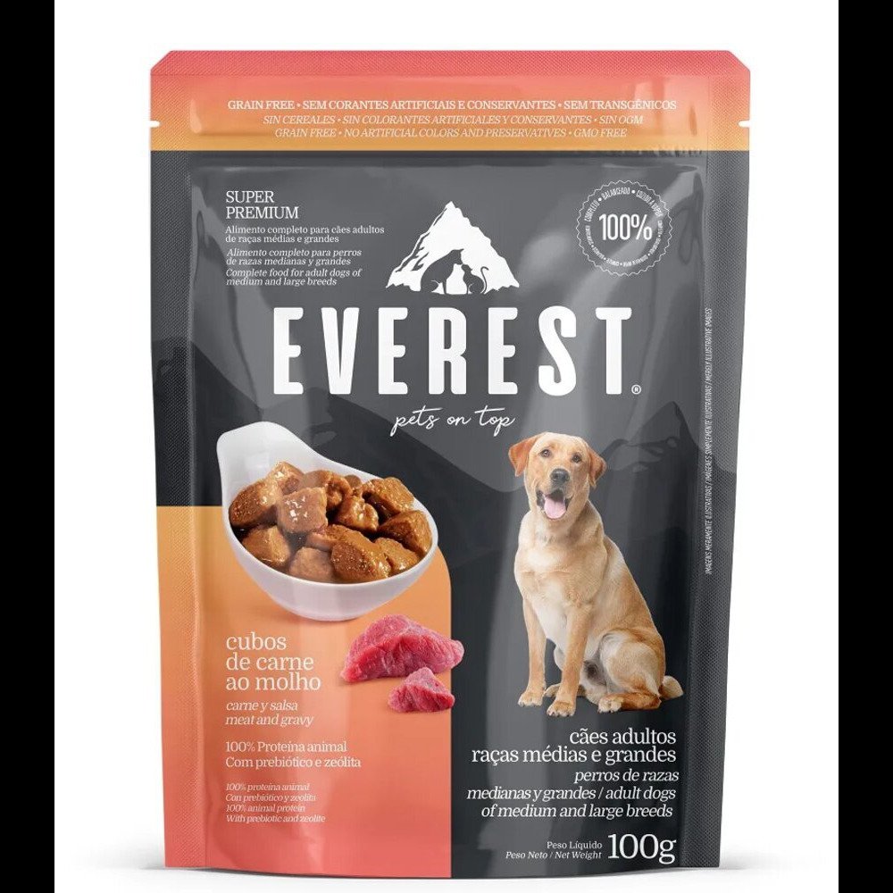 A Ração Úmida Everest Cães Adultos Raças Médias e Grandes Cubos de Carne ao Molho é um alimento úmido, balanceado e completo, que proporciona uma digestão otimizada, pele e pelos brilhantes.